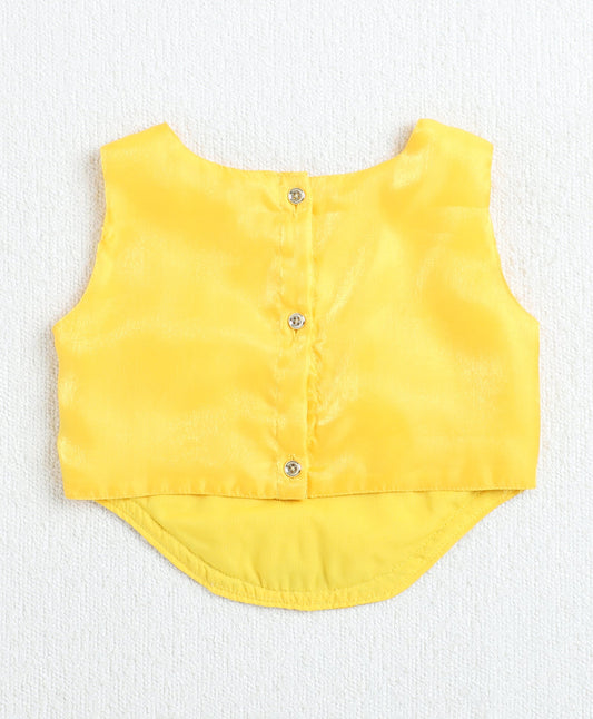 The Magic Wand Woven Waist Coat Top & Pleated Skirt With Bow Applique - Yellow
