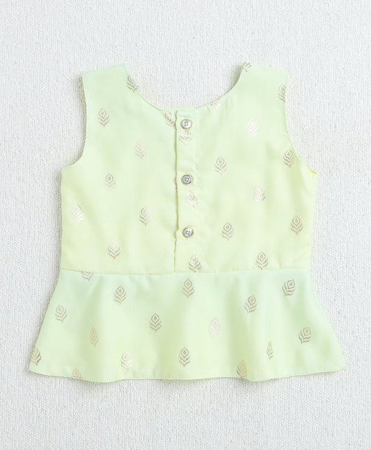 Woven Sleeveless Foil Printed With Gota Lace Embellished Top with Palazzo Set-Yellow