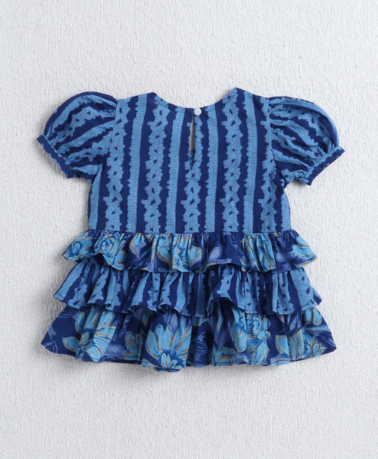 Cotton Woven Puff Sleeves Floral Printed Top with Pant- Blue