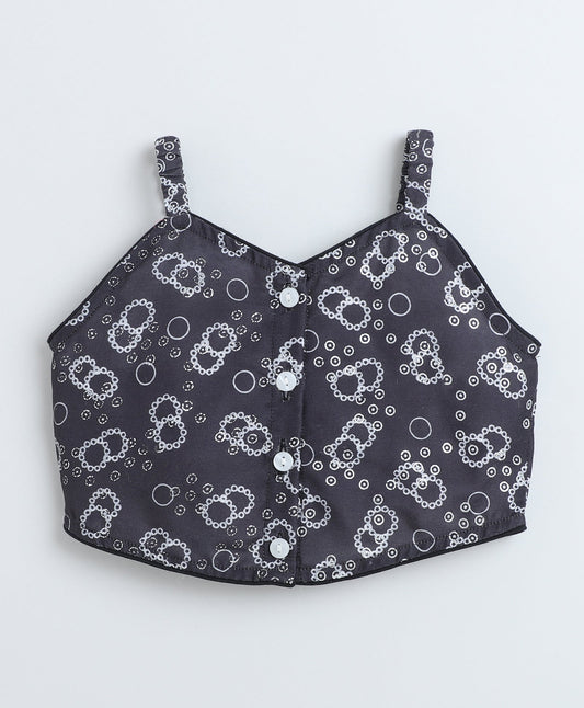 Woven Singlet Polka Dots Printed Top and Co-Ordinating Palazzo Set- Black