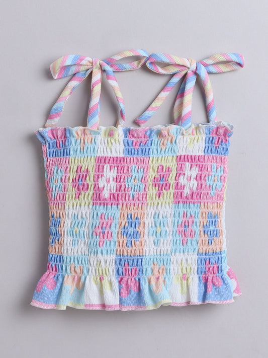 All Over Printed Tie up Strapy Top & Skirt Set- Pink