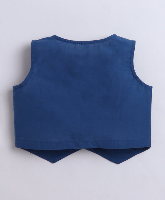 Cotton Prineted Sleeveless waistcoat Top and Bottom Set- Teal Blue