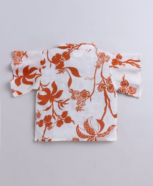 Cotton Frill Sleeves Floral Printed Top and Bottom Co Ord Set- Off White