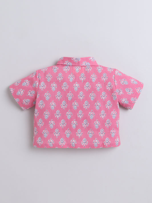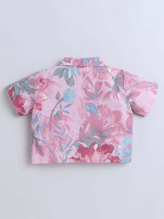 Floral Printed Half Sleeves Top and Pant Set- Pink