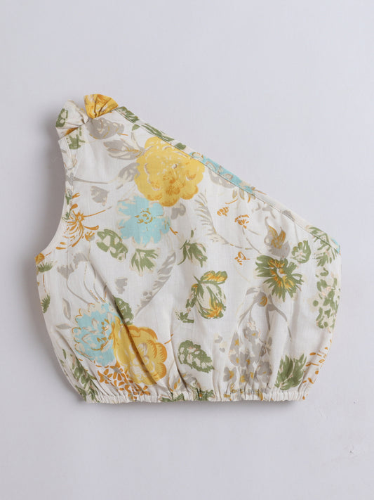Cotton One Shoulder Floral Printed Top With Tiered Skirt - Yellow