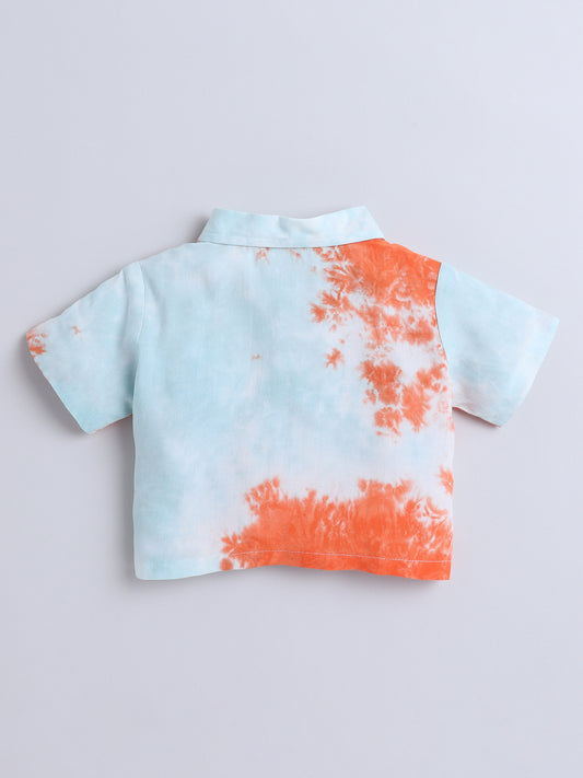 Cotton Tie & Dye Printed Short Sleeves With Collar Co-ord Sets-Blue