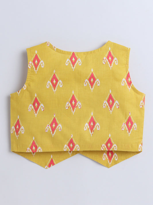 Sustainable Ikat Printed Sleeveless Waist Co ord Sets Mustard