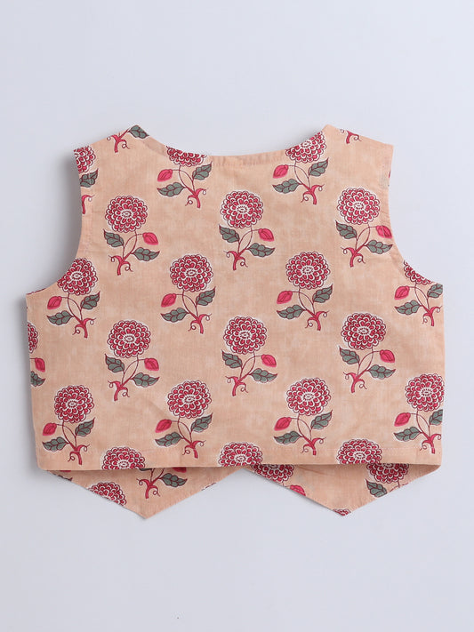 Cotton Floral Printed Sleeveless Waist Co-ord Set-Peach