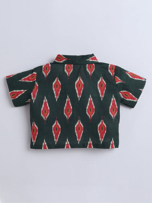 Cotton Ikat Printed Half Sleeves Co-ord Set- Green