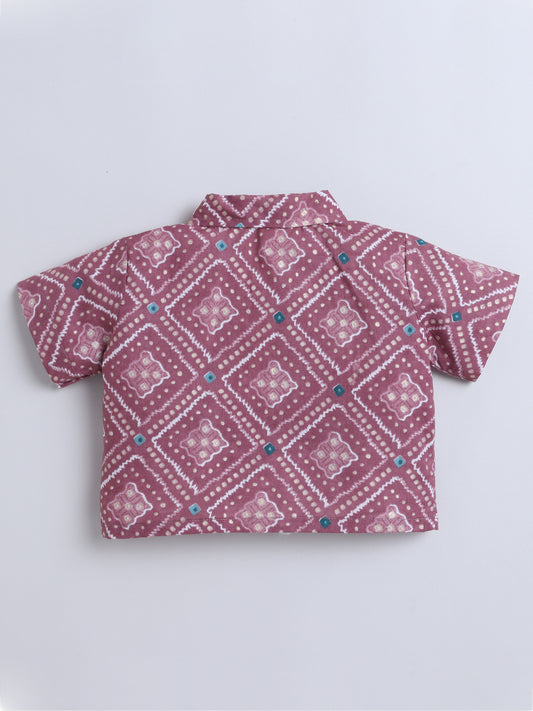 Cotton Geometric Printed Half Sleeves Co-ord Set- Onion Pink