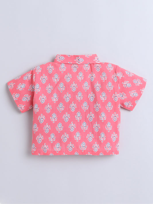 Cotton Floral Printed Half Sleeves Co-ord Set- Pink