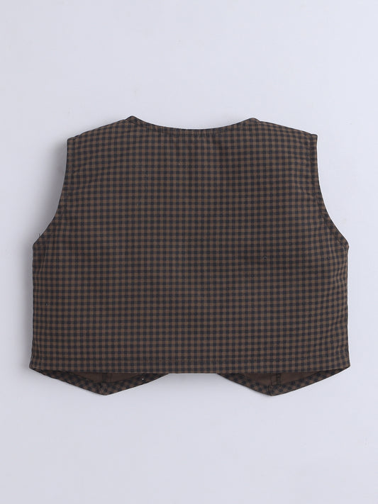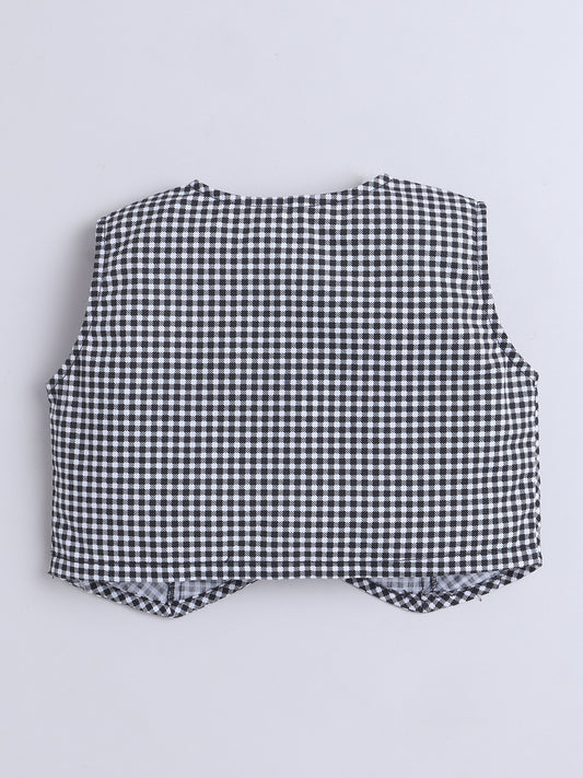Cotton Sleeveless Checked Coordinating Waist Coat And Skirt Set - Black