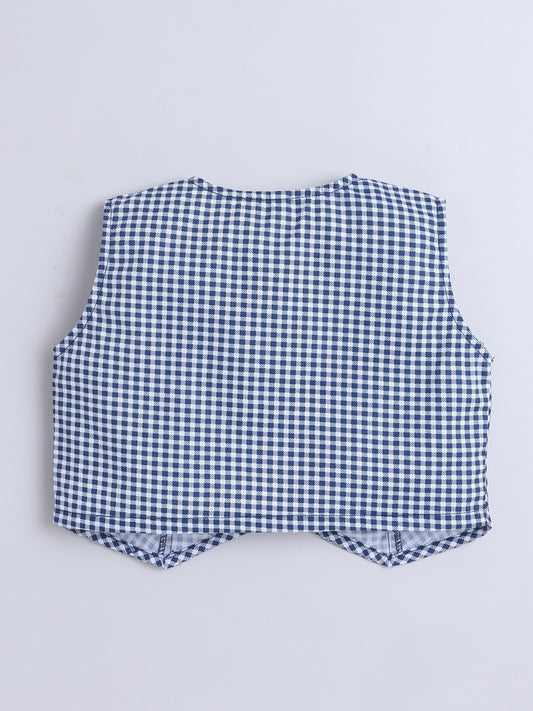 Cotton Sleeveless Checked Coordinating Waist Coat And Skirt Set - Blue