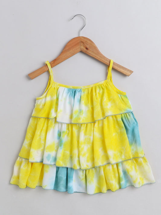 Tie & Dye Printed Rayon Sleeveless Tiered Tops - Yellow, Blue
