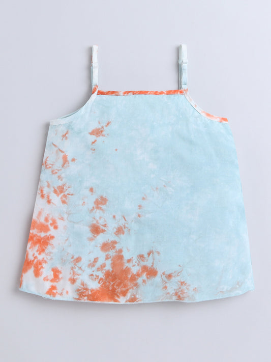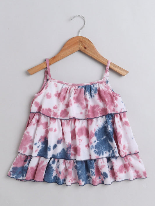 Tie & Dye Printed Sleeveless Tiered Tops-Multi