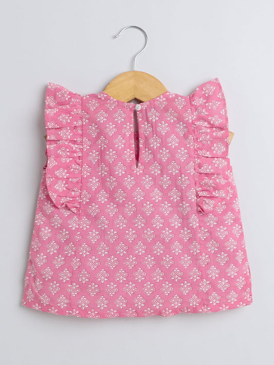 Floral Printed Cotton Sustainable and Comfortable Ruffle Sleeves Top - Pink