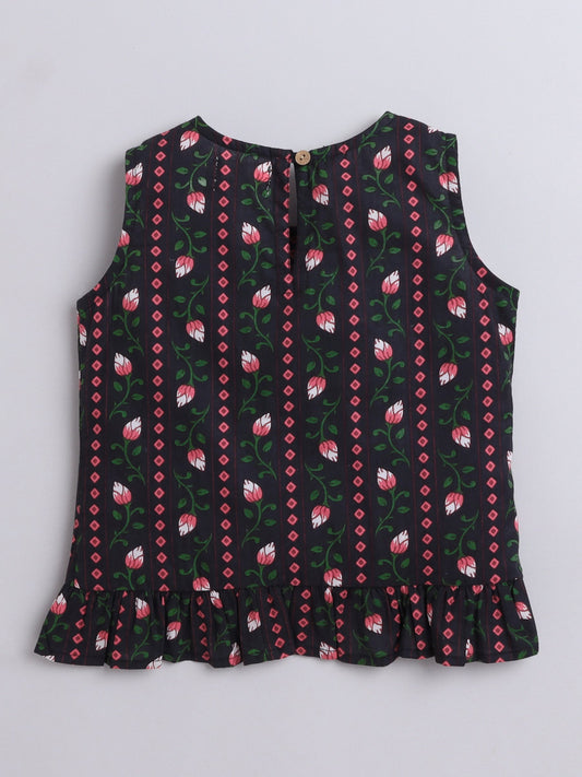 Floral Printed Cotton Sleeveless Incut Style Top - Black
