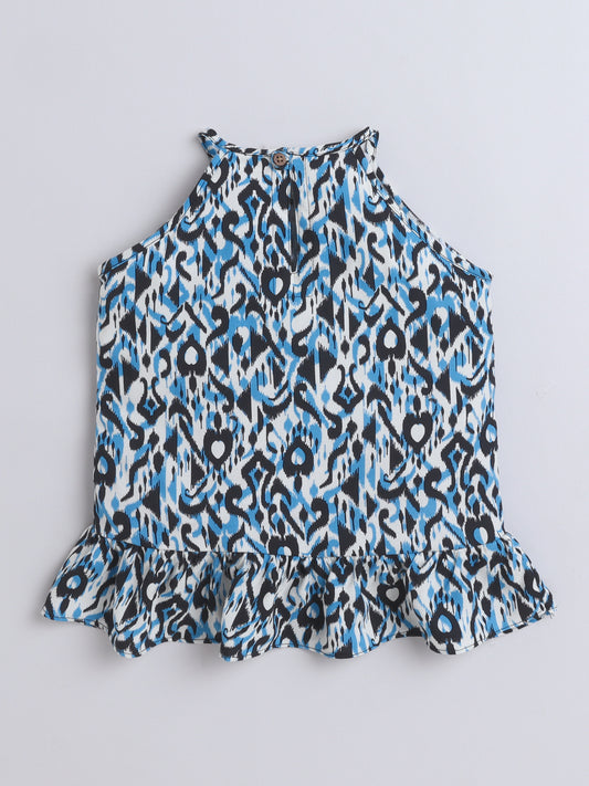 Rayon Abstract Printed CottonFrill Detailed Incut Top - Black