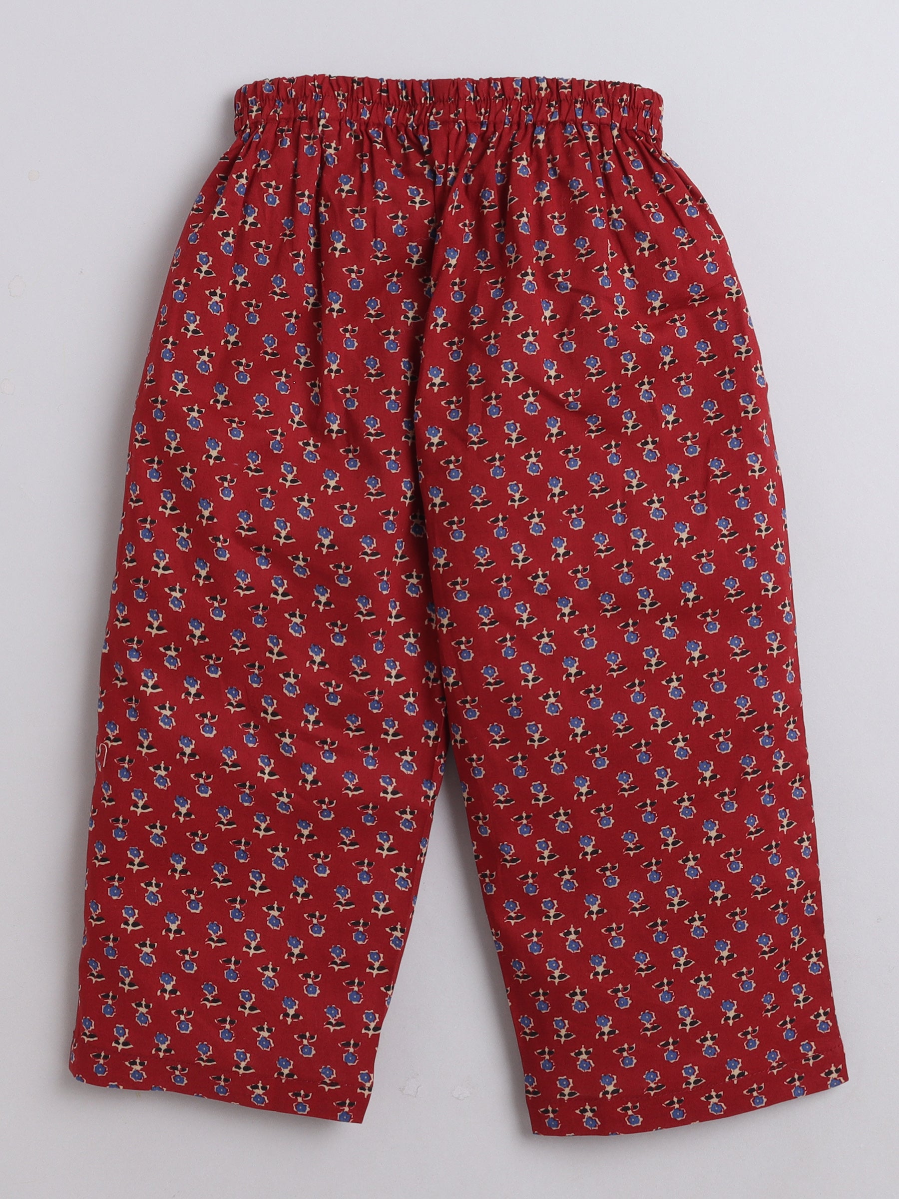 3/4th Sleeves Cotton Floral Printed Top With Pant Lounge Wear Set Maroon