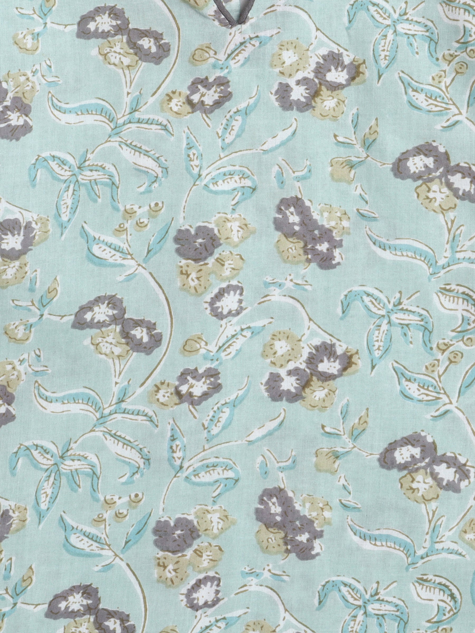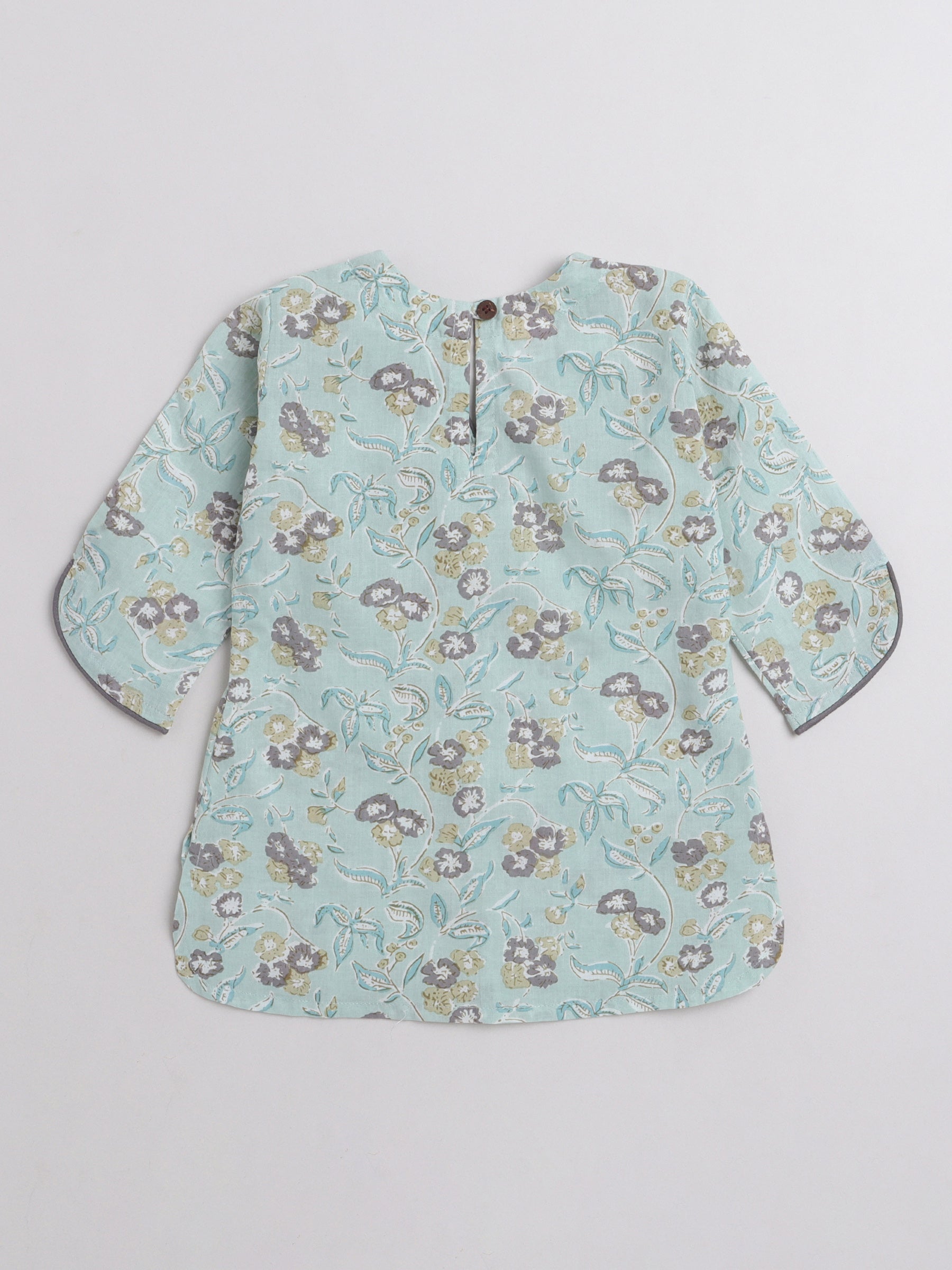 3/4th Sleeves Floral Printed Top With Printed Bottom Loungewear Set For Girls Mint