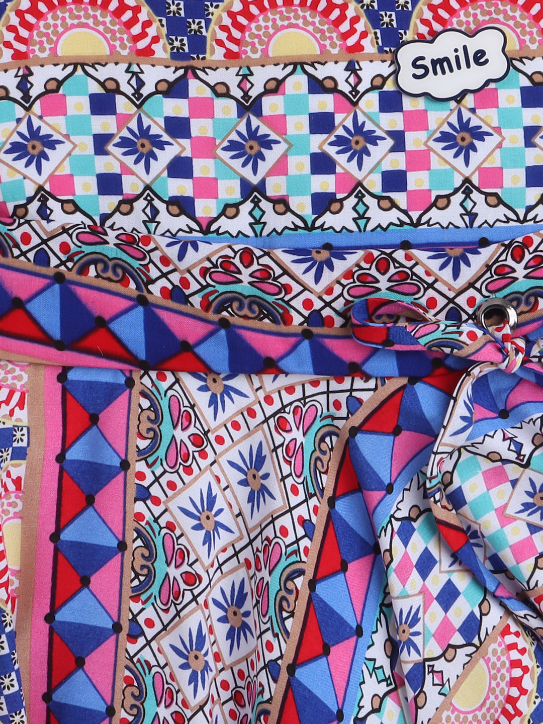 Abstract Printed Sleeveless Dress With Corsage For Girls-Blue