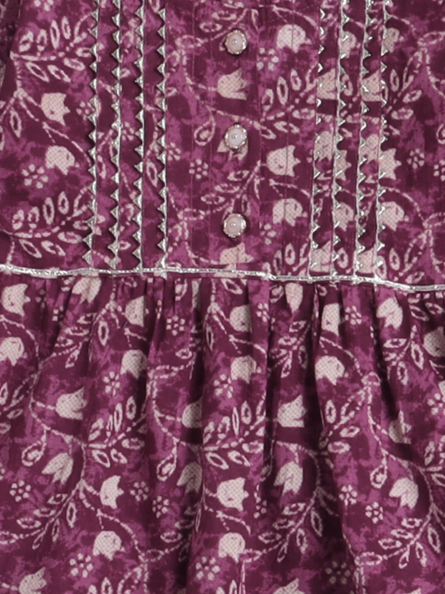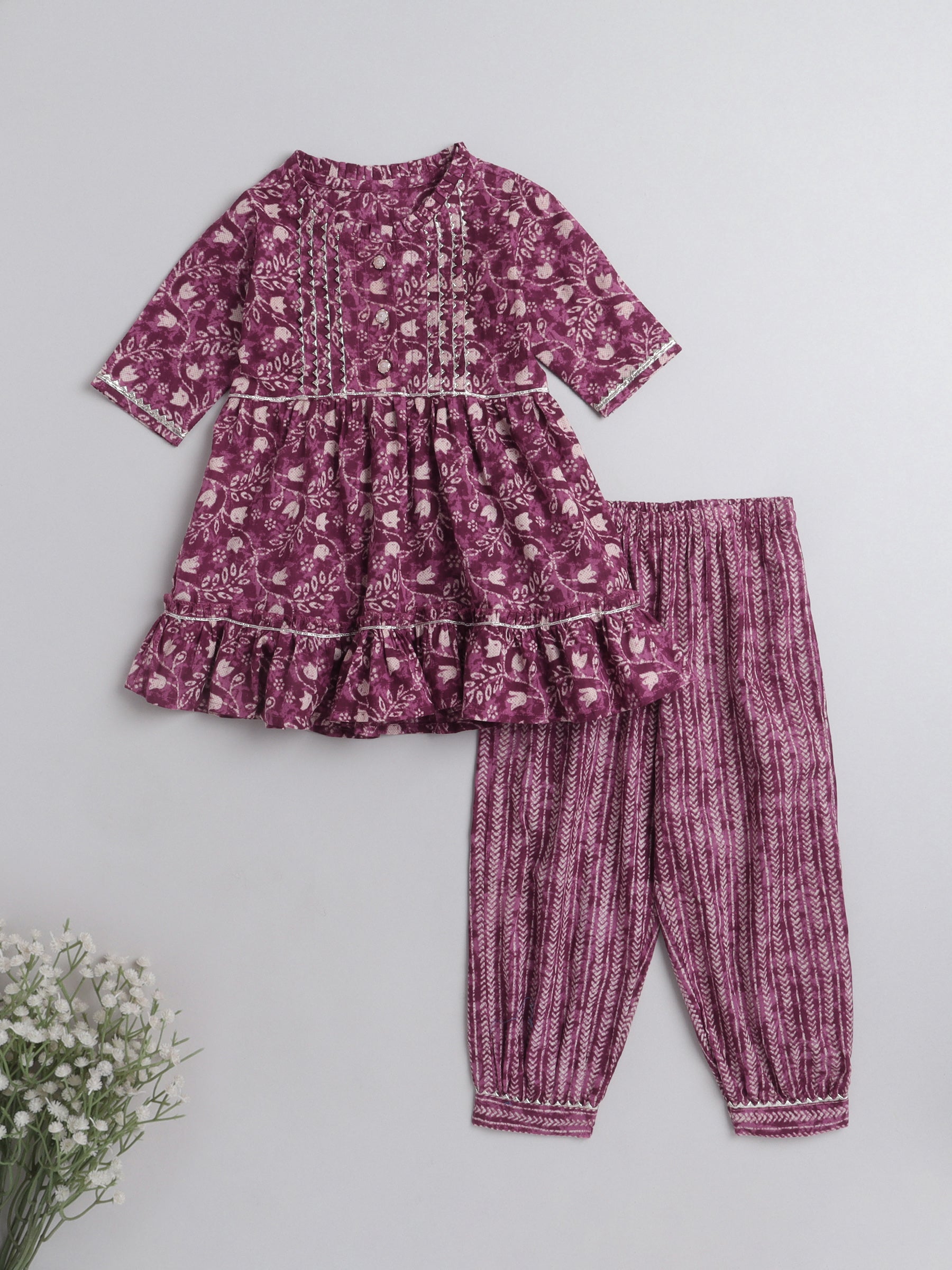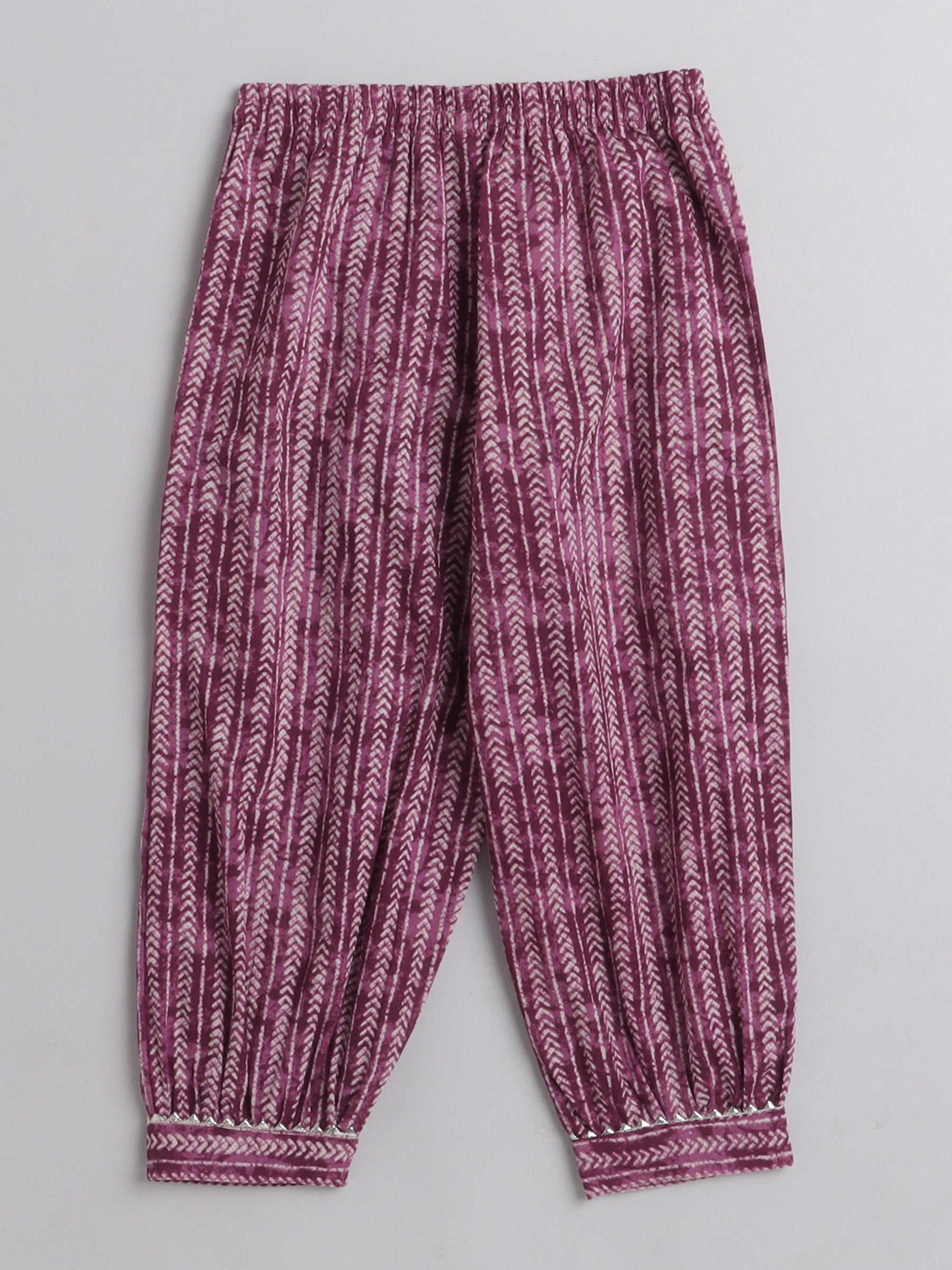 All Over Printed Elbo Sleeves Gathered Top With Afhgani Pants For Girls-Pink