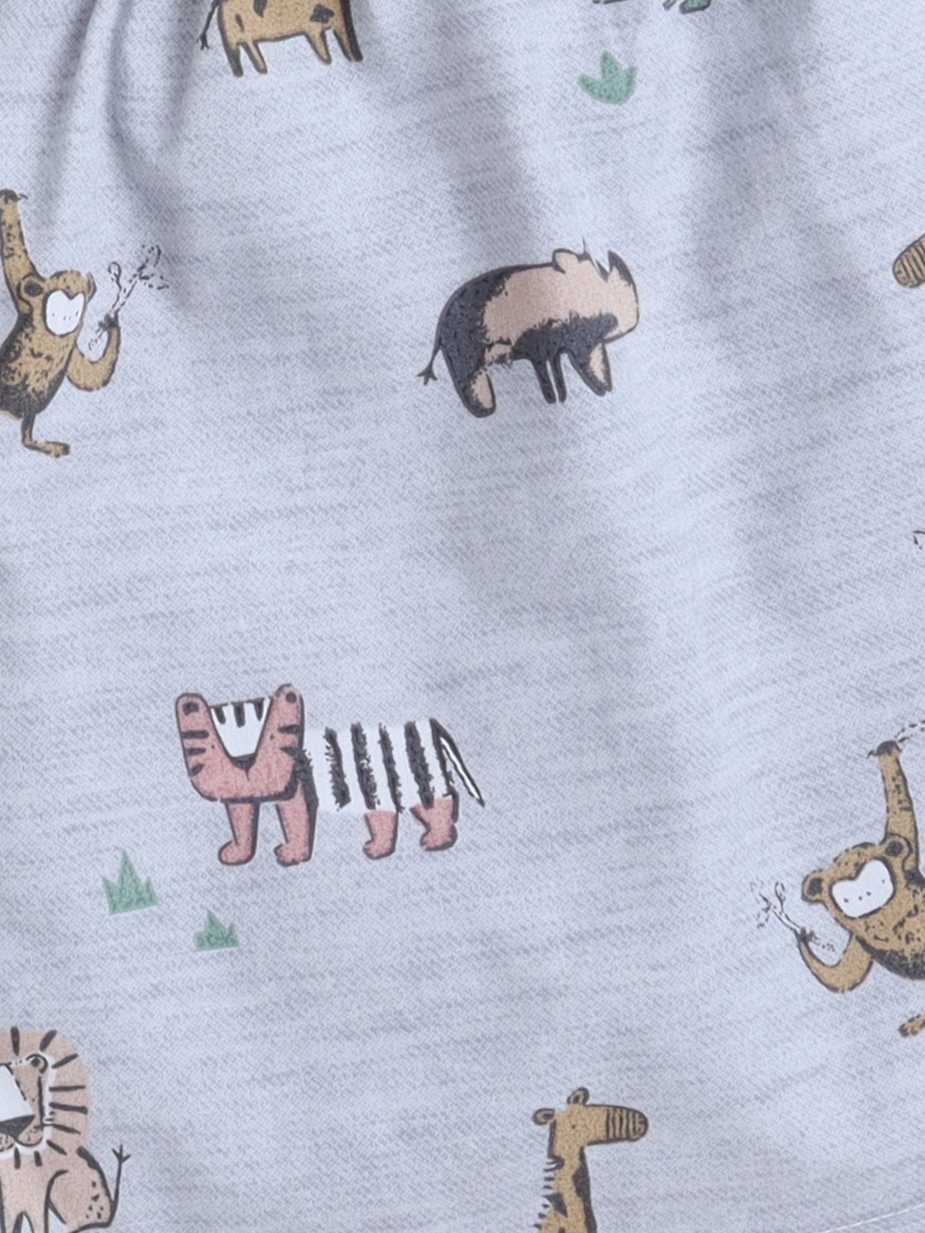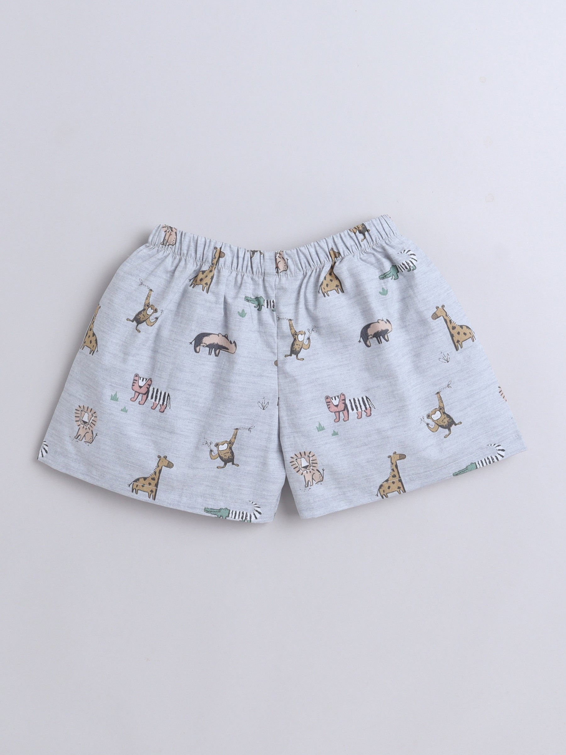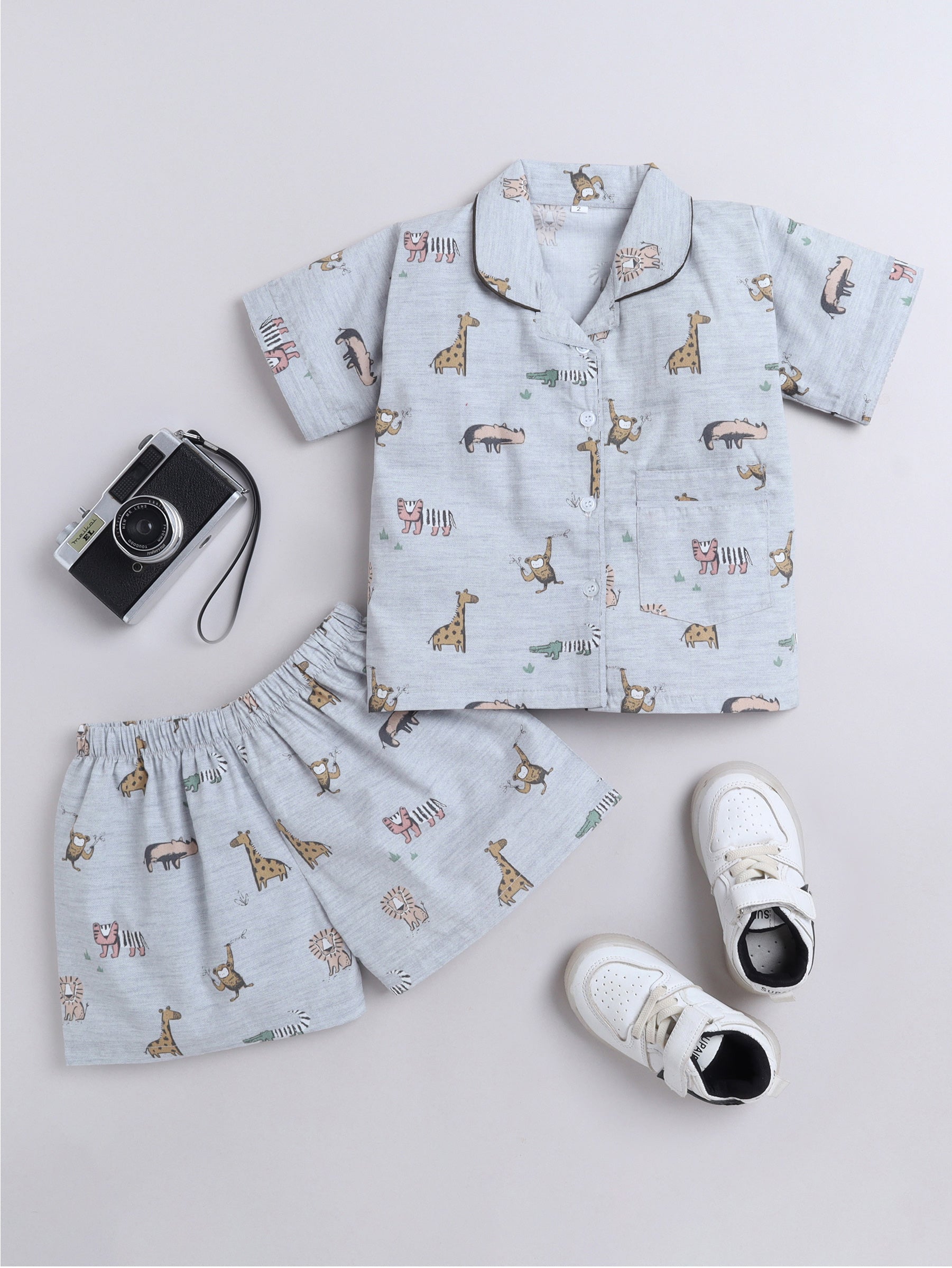 Animal Printed Cotton Half Sleeves Shirt and Shorts Set Night Suit Set For Kids Grey