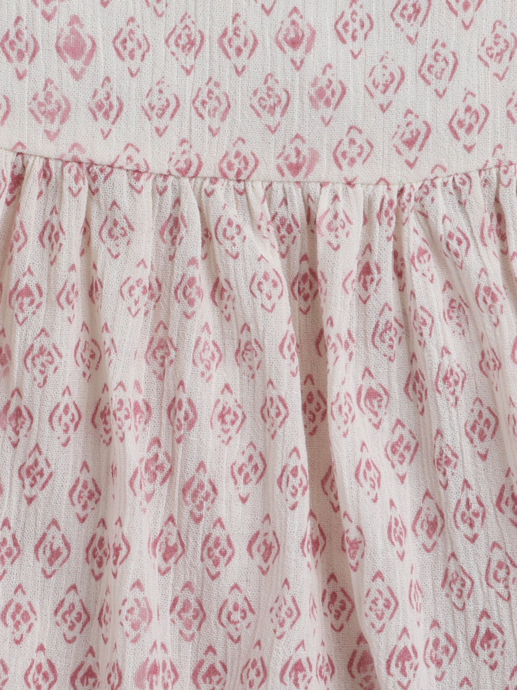 Block printed Singlet Neck sustainable Cotton Dress for Girls - Off White