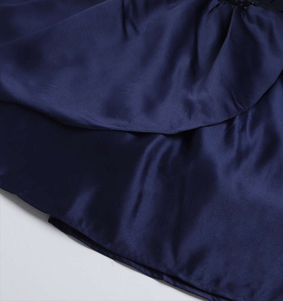 Bow Embellished Cap Sleeves Long Gown Dress For Girls - Navy