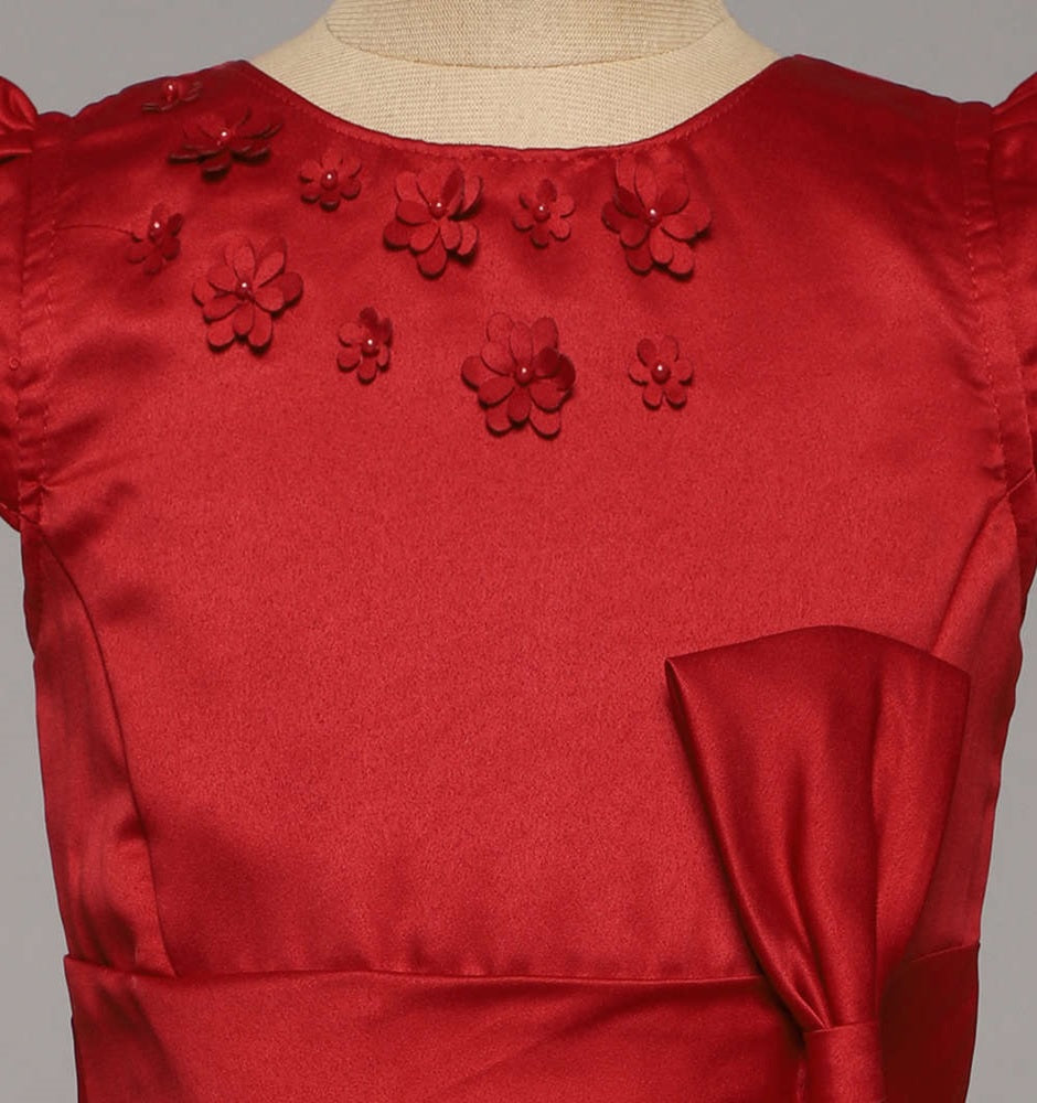 Bow Embellished Cap Sleeves Long Gown Dress For Girls - Red