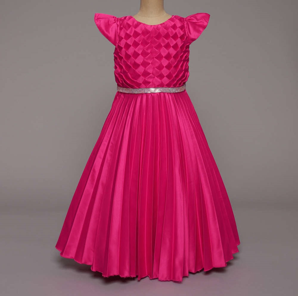 Cap Sleeves Canadian Smocking Detailed Bodice With Placement Stone Embellished Gown - Fuchsia Pink