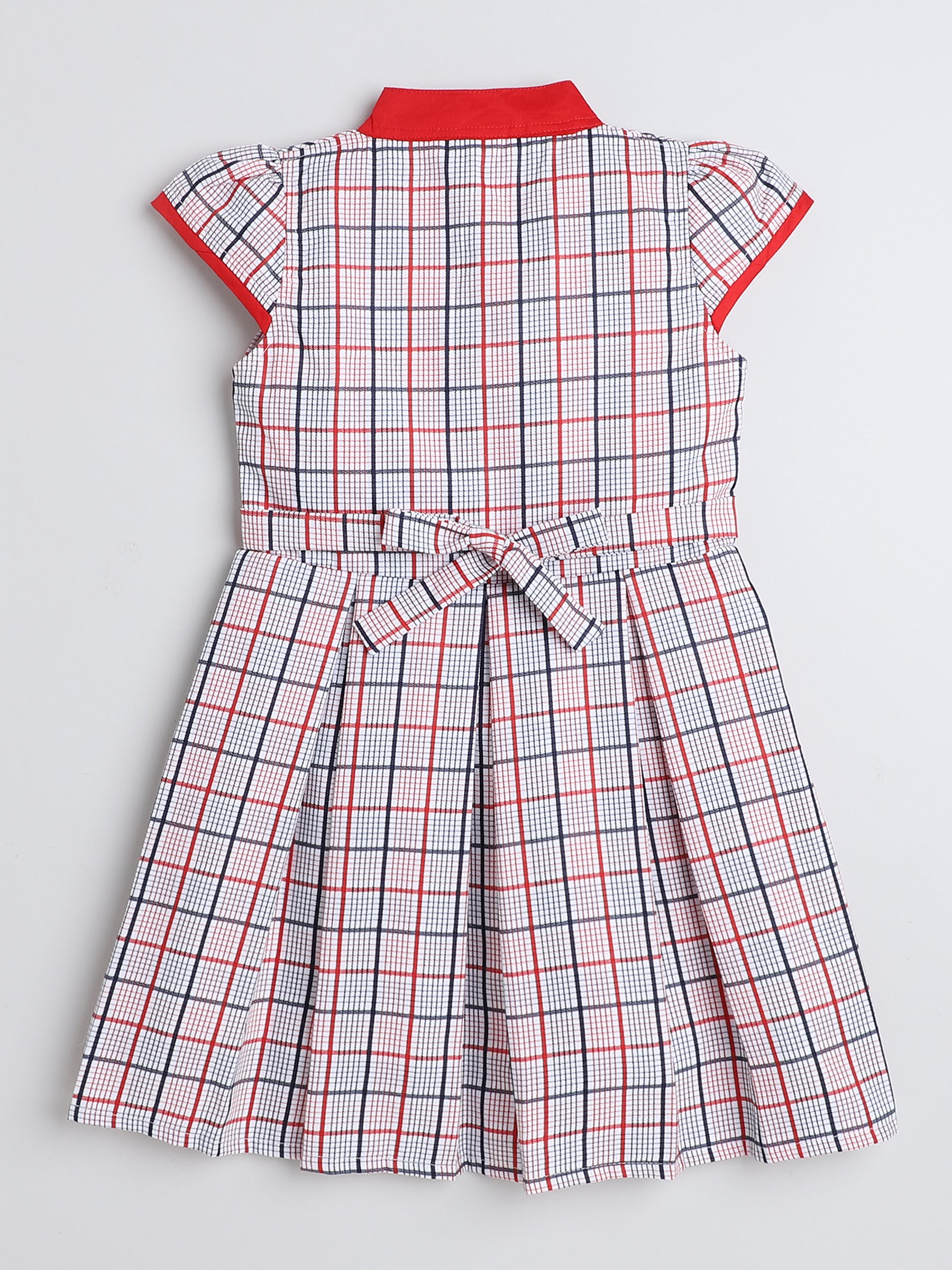 Cap Sleeves Checks Printed Dress For Girls With Contrast Bow-Pink