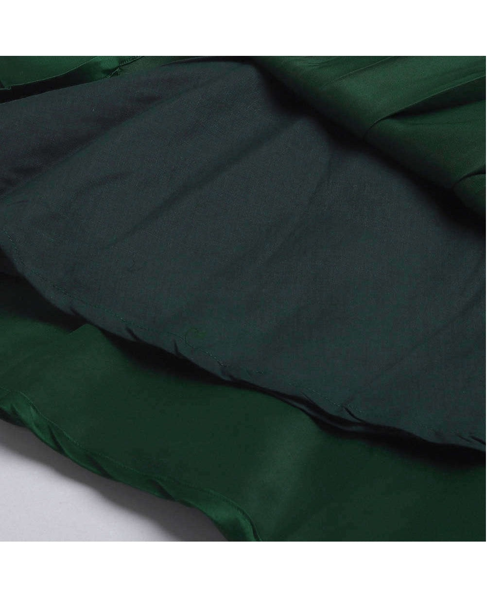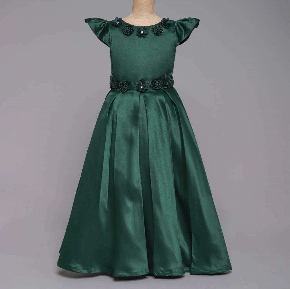 Cap Sleeves Stone Floral Applique Detailed Box Pleated Fit & Flare Gown - Green