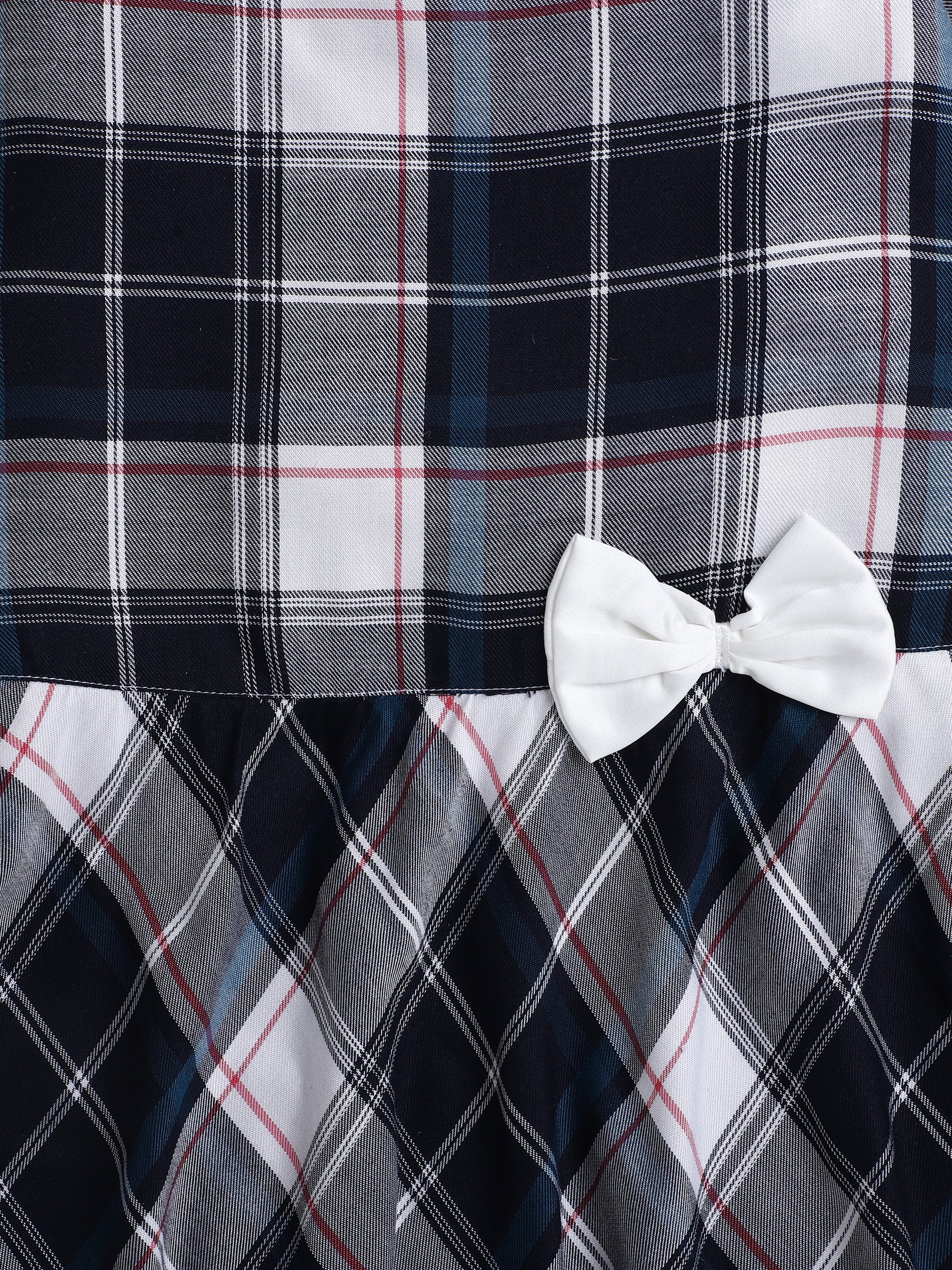 Checked Cap Sleeves Casual Dress With Bow Applique For Girls-Blue, Grey