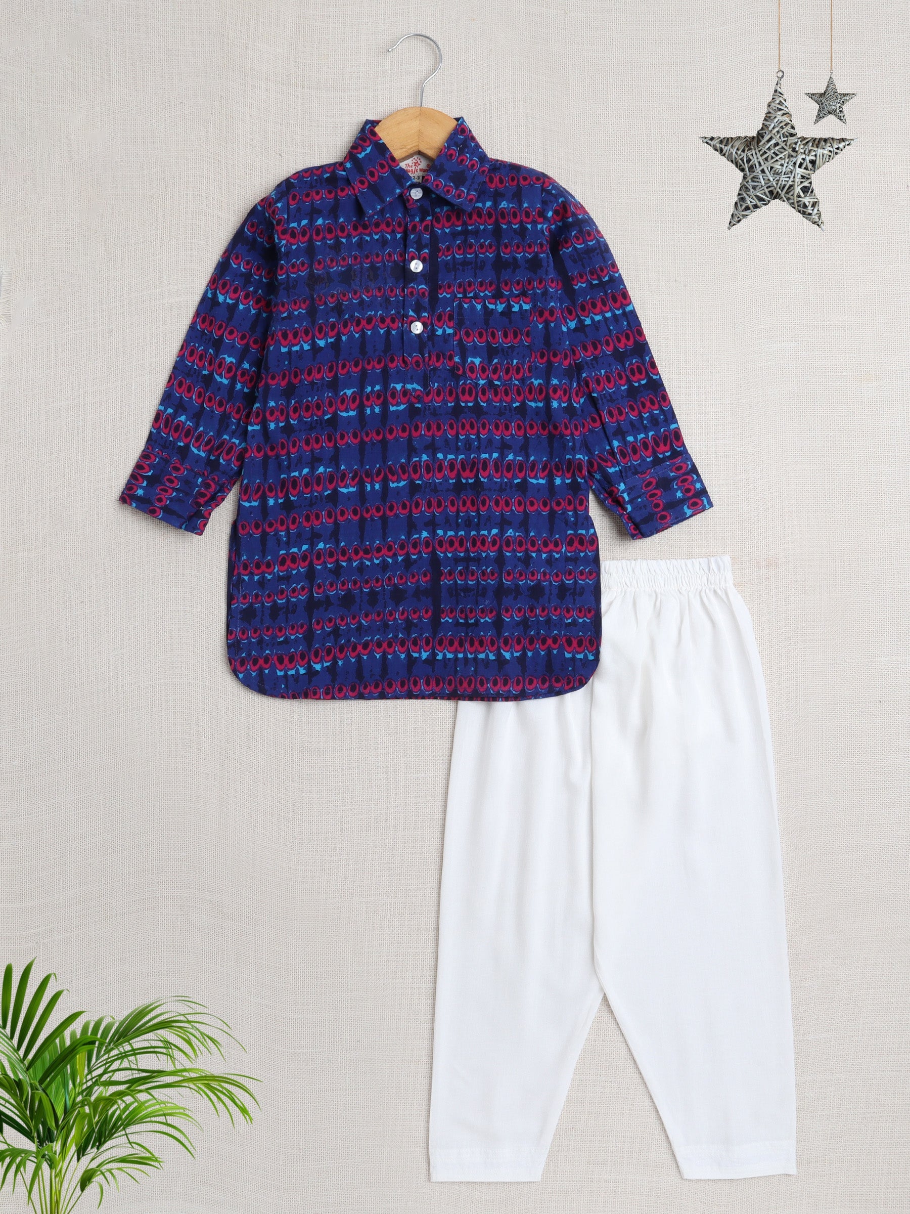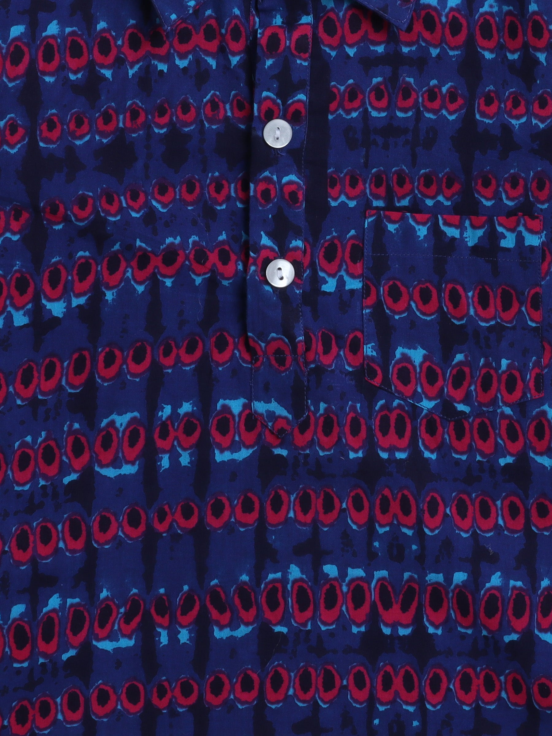 Cotton Full Sleeves Abstract Printed Pathani Kurta With Pyjama Set - Royal Blue