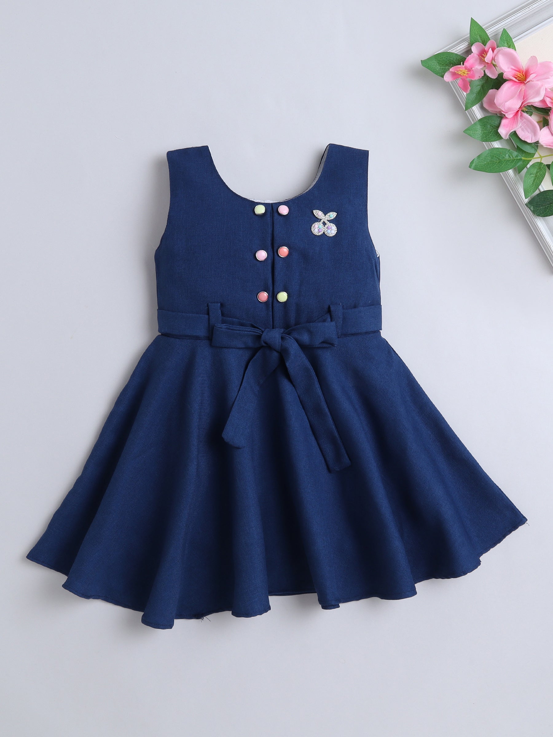 Cotton Sleeveless Cherry Embellished Dress - Navy Blue