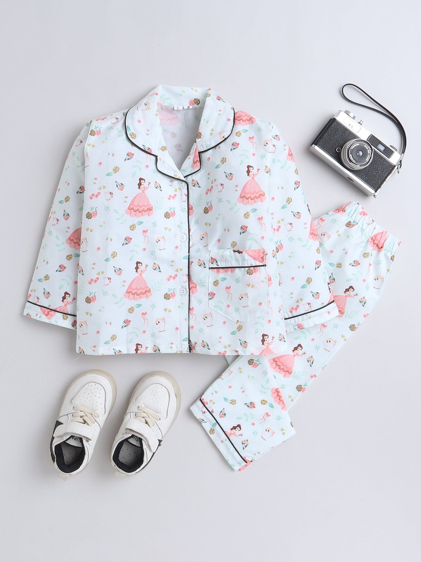 Cotton Woven Full Sleeves Princess Printed Coordinating Night Suit Set - Sea Green