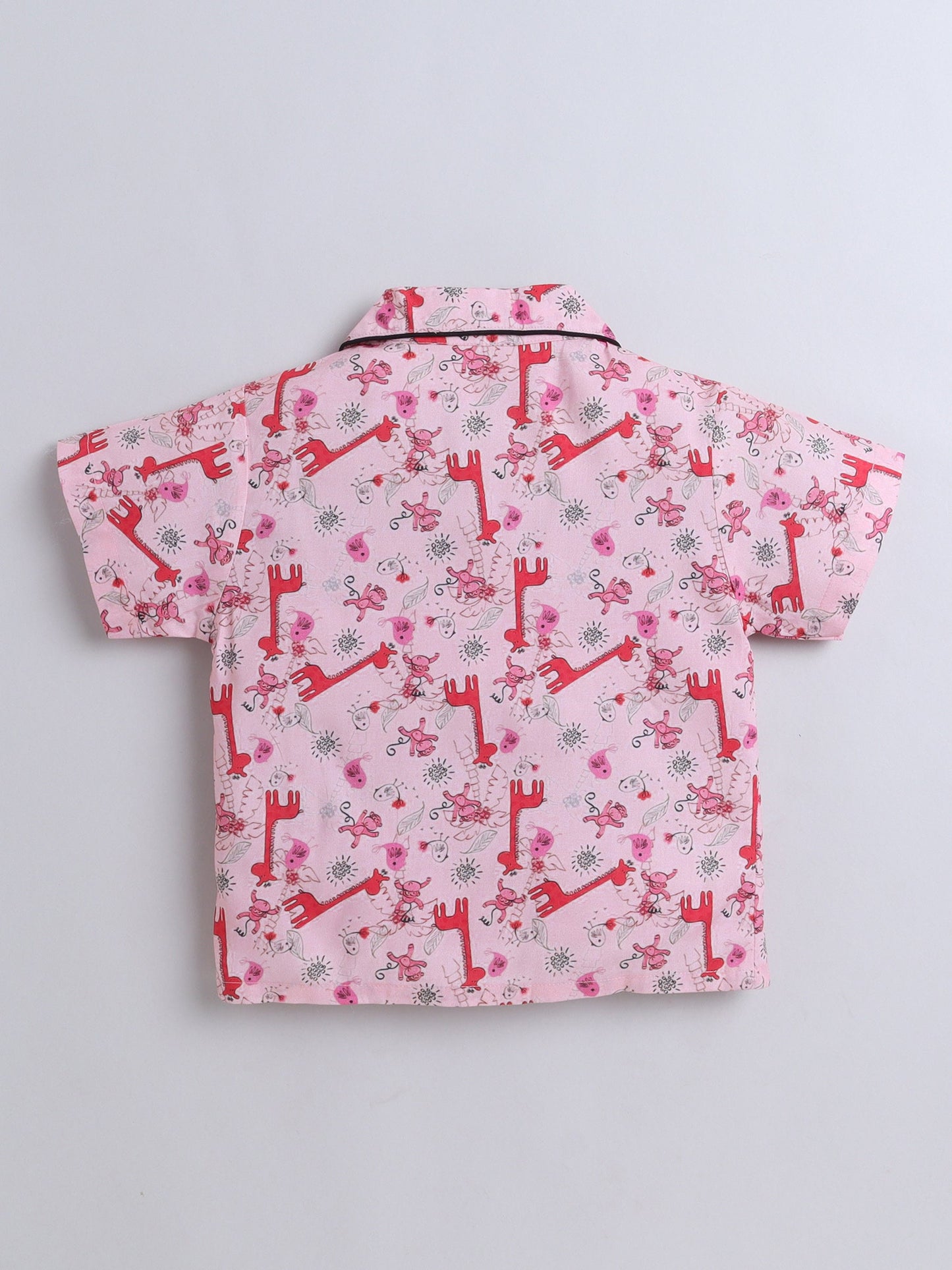 Cotton Woven Half Sleeves Animals Printed Coordinating Night Suit Set - Peach