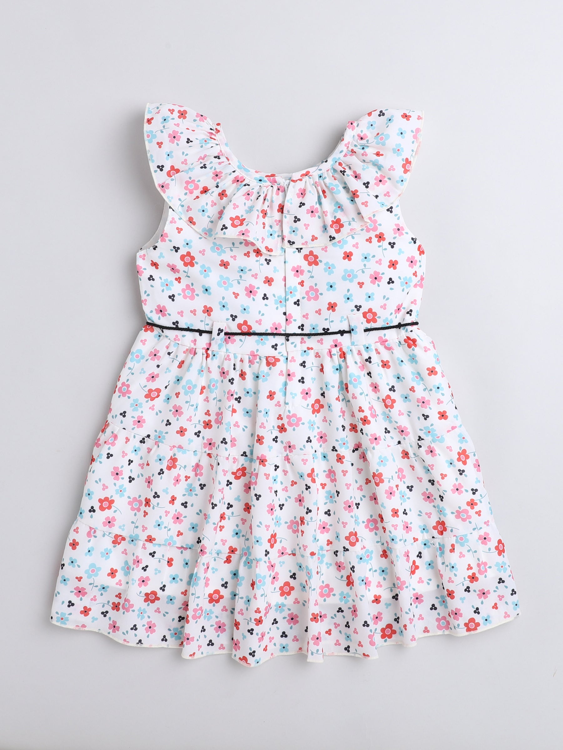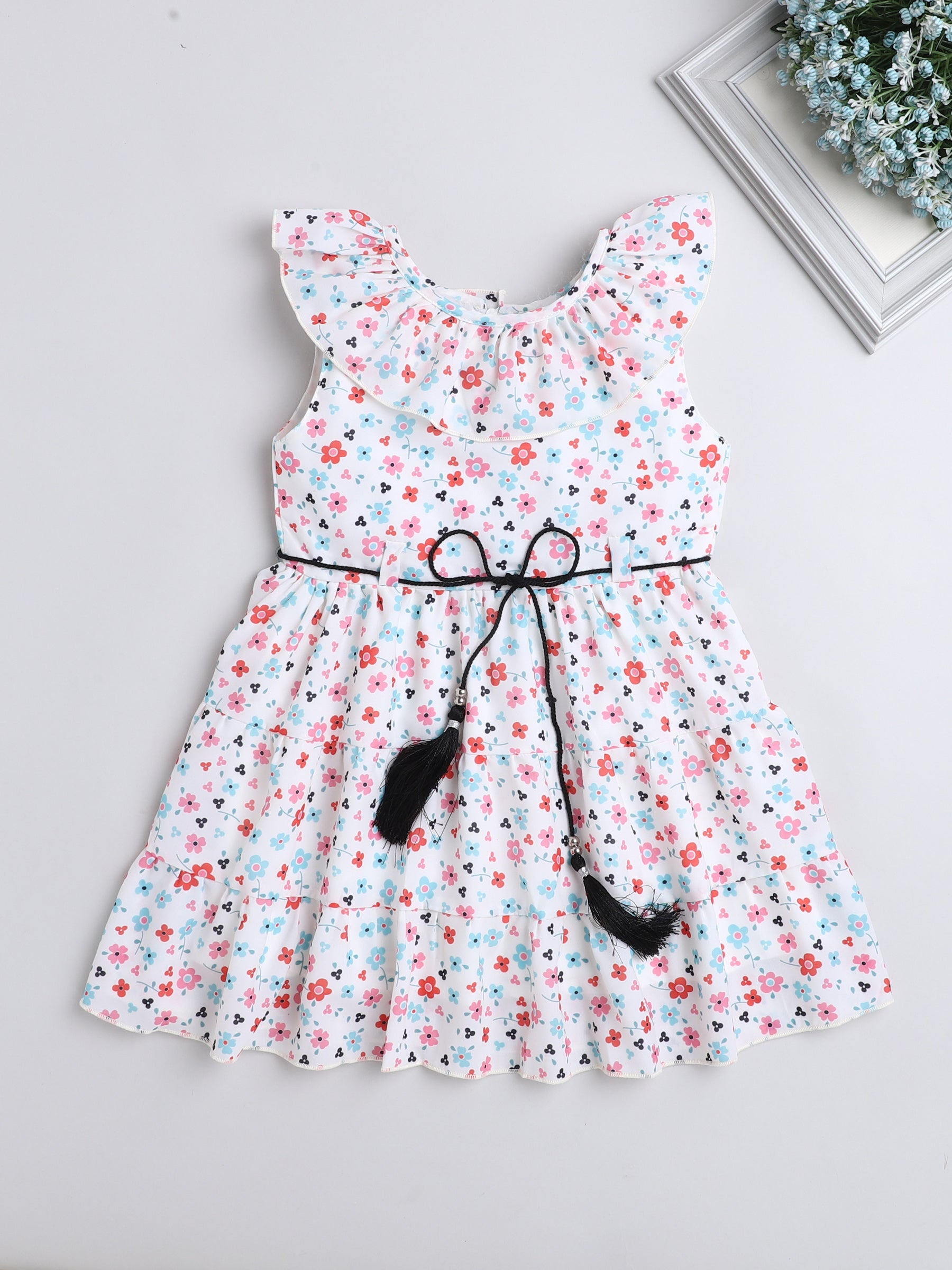 Ditsy Printed Cap Sleeves Dress For Girls-Pink