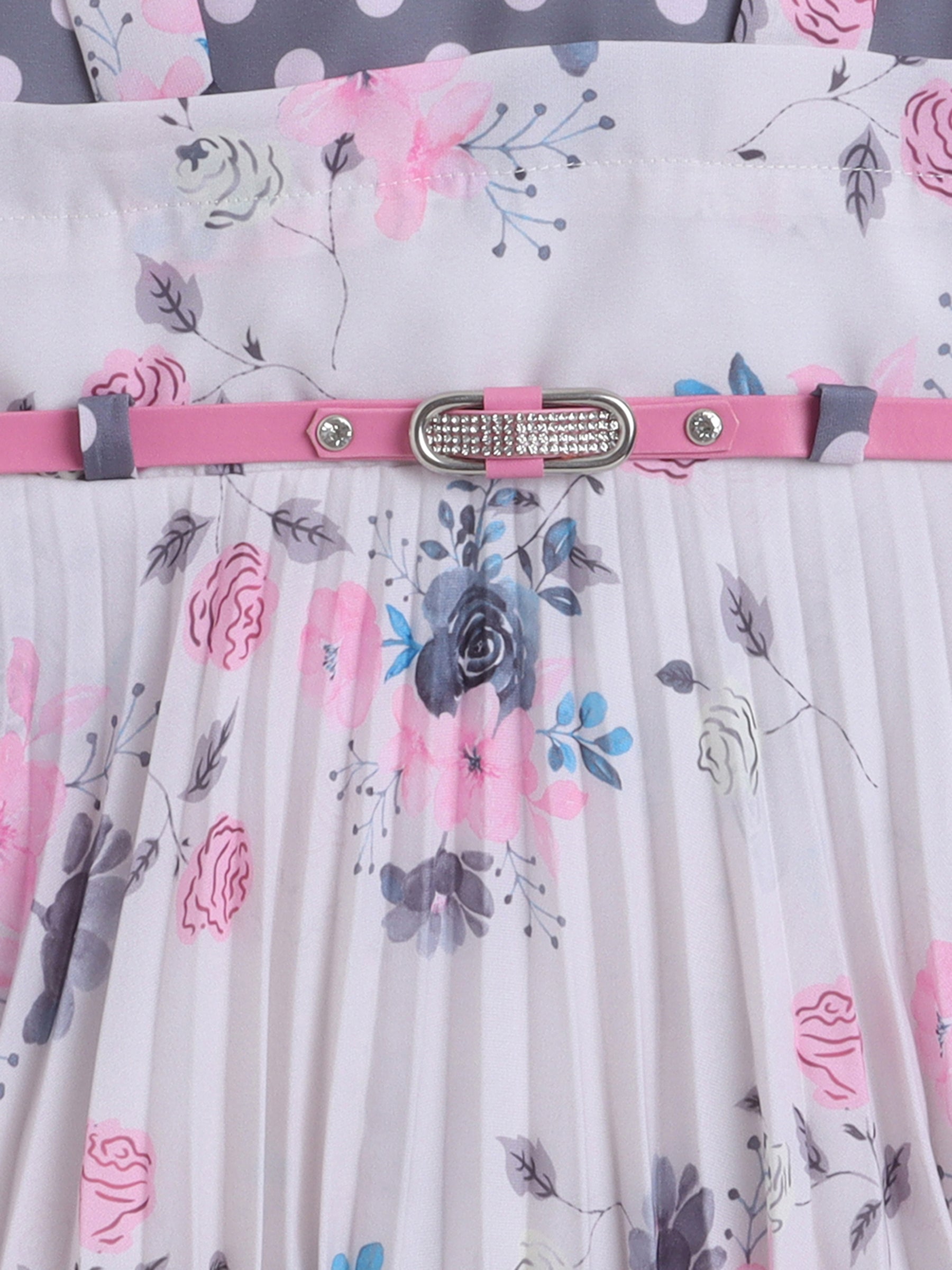 Floral & Polka Dots Printed Flared Sleeves Dress For Girls -Pink