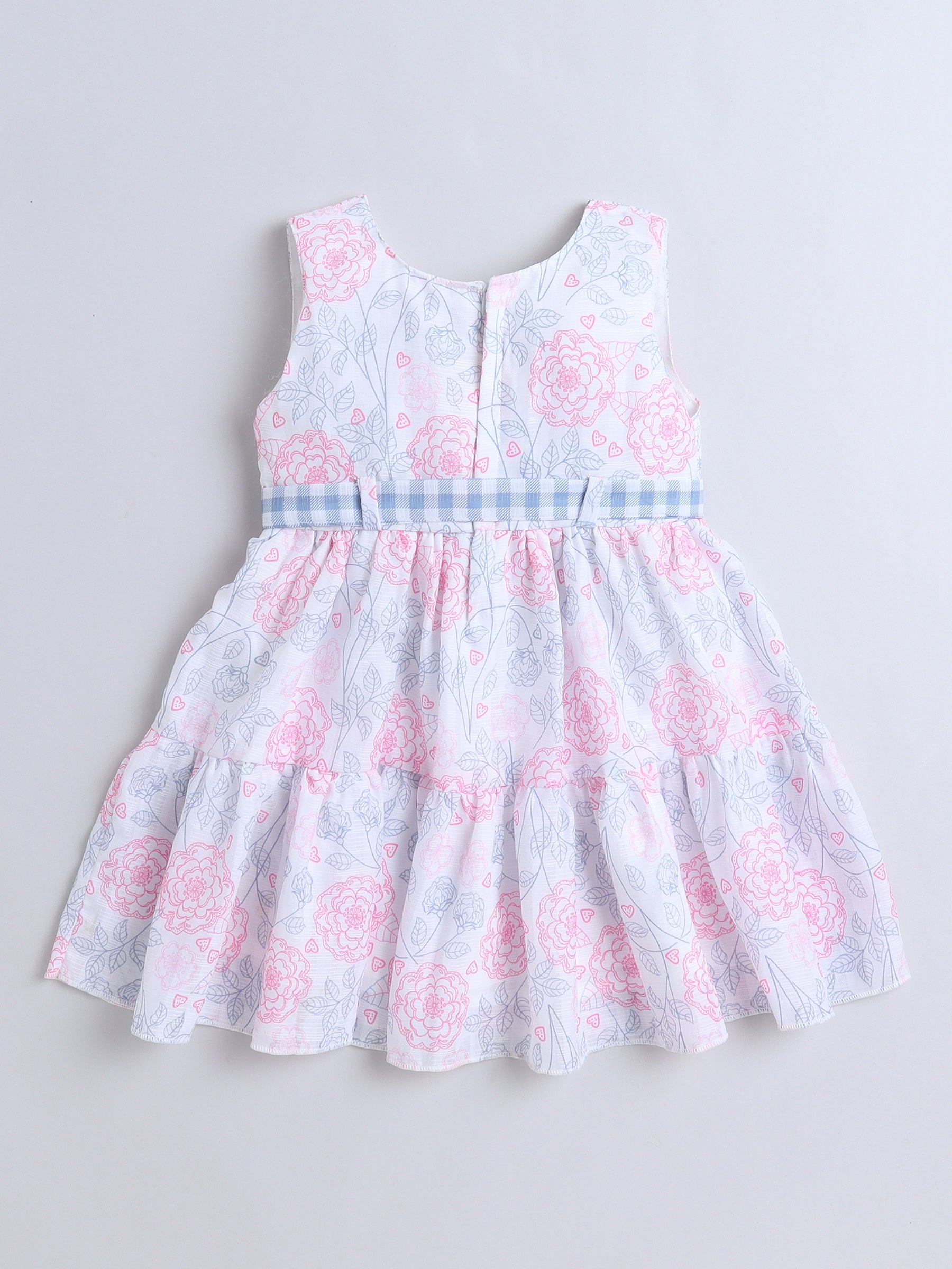 Floral Printed Dress With Half Sleeves Jacket - Pink