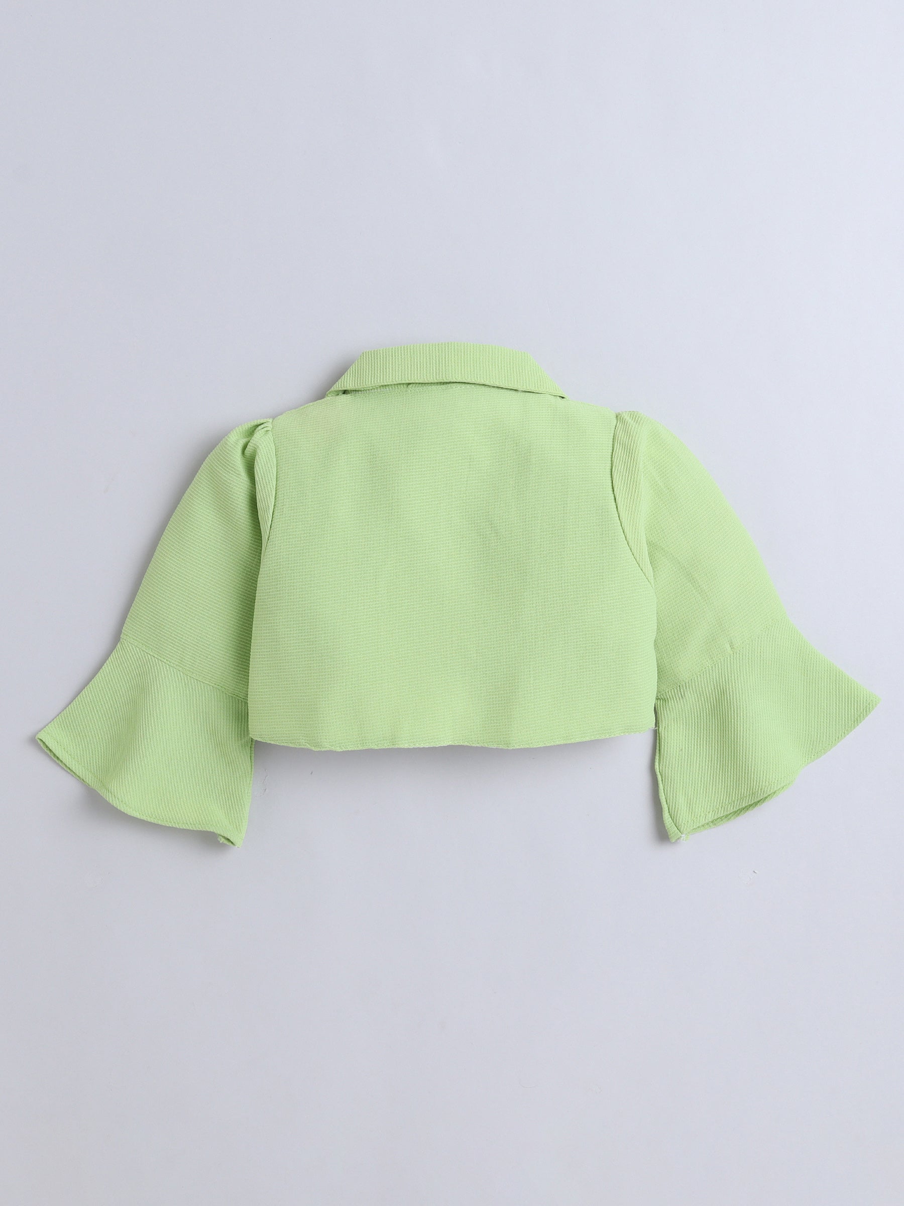 Floral Printed Dress With Three Fourth Bell Sleeves Jacket - Green