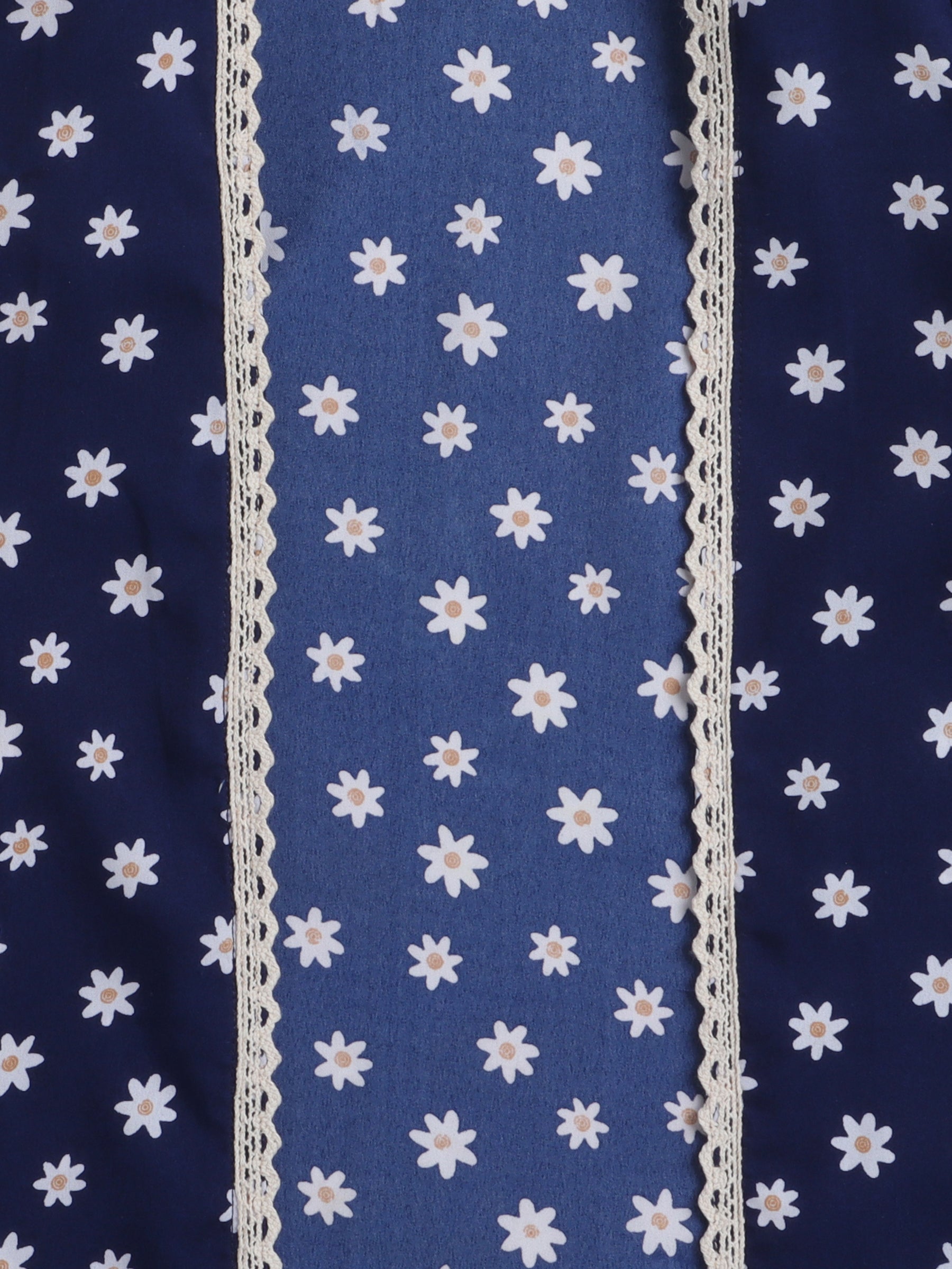 Floral Printed Front Open Lace Embelished 3/4th Sleeves Long Cape For Girls