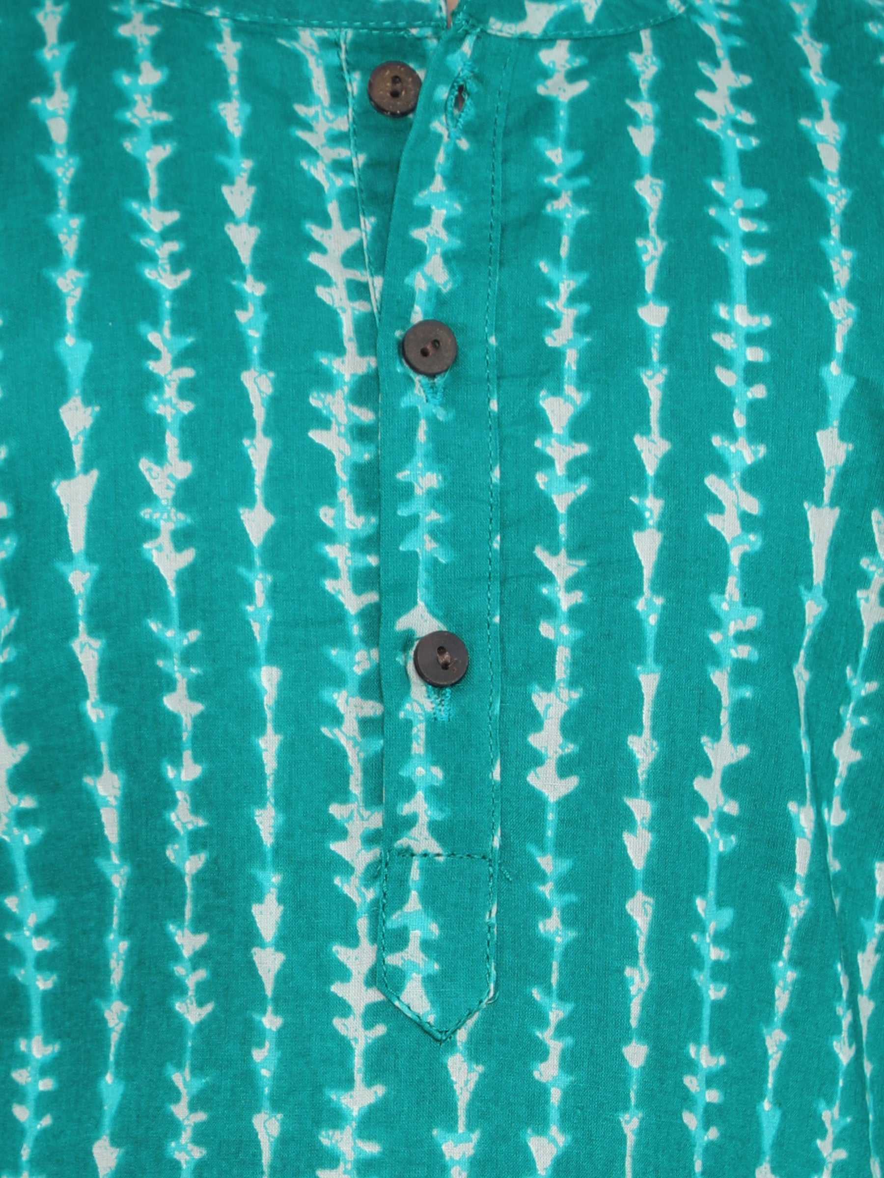 Floral Printed Mandarin Collar Full Sleeves Kurta And Pant Set-Green