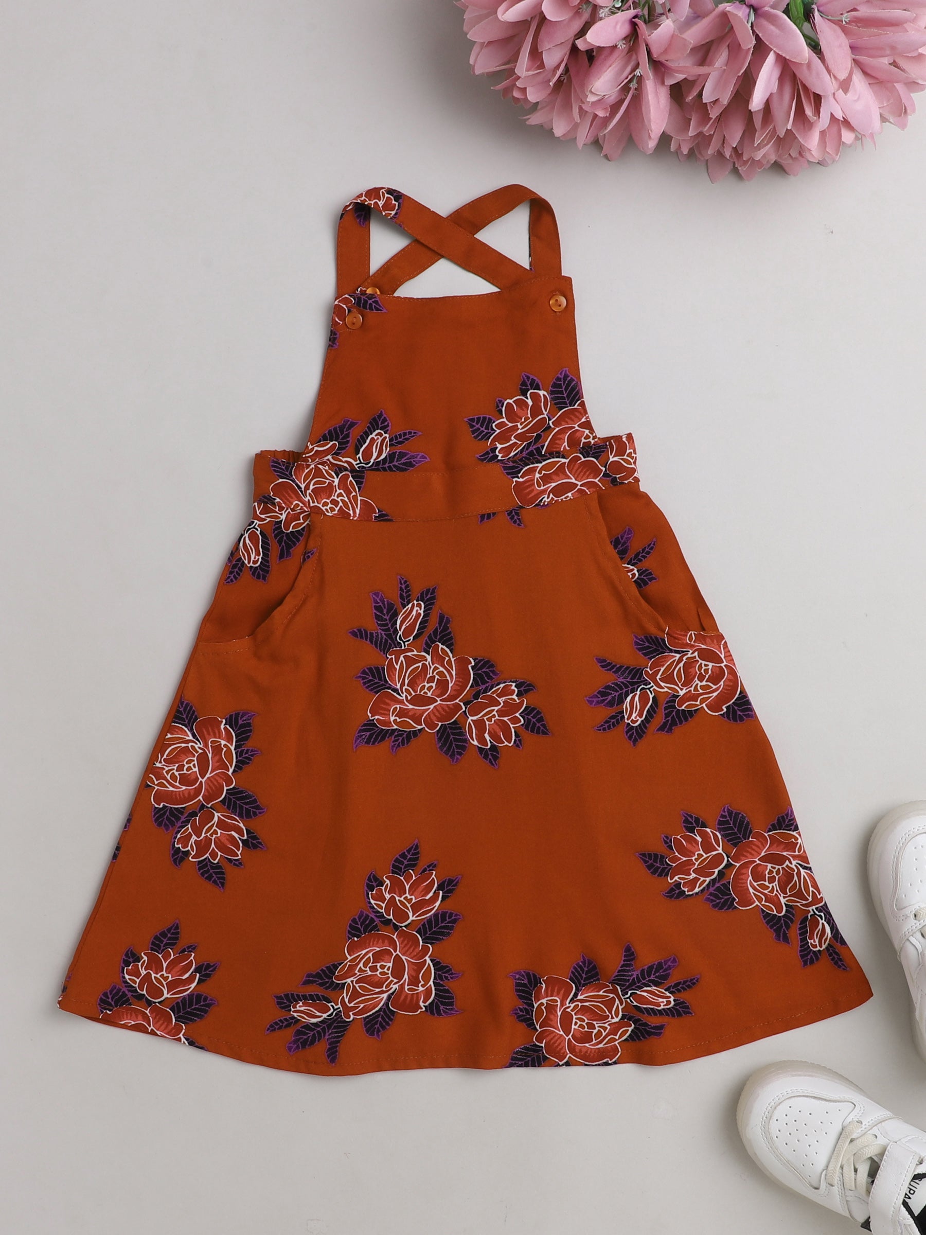 Floral Printed Sleeveless Pinafore Dress-Rust