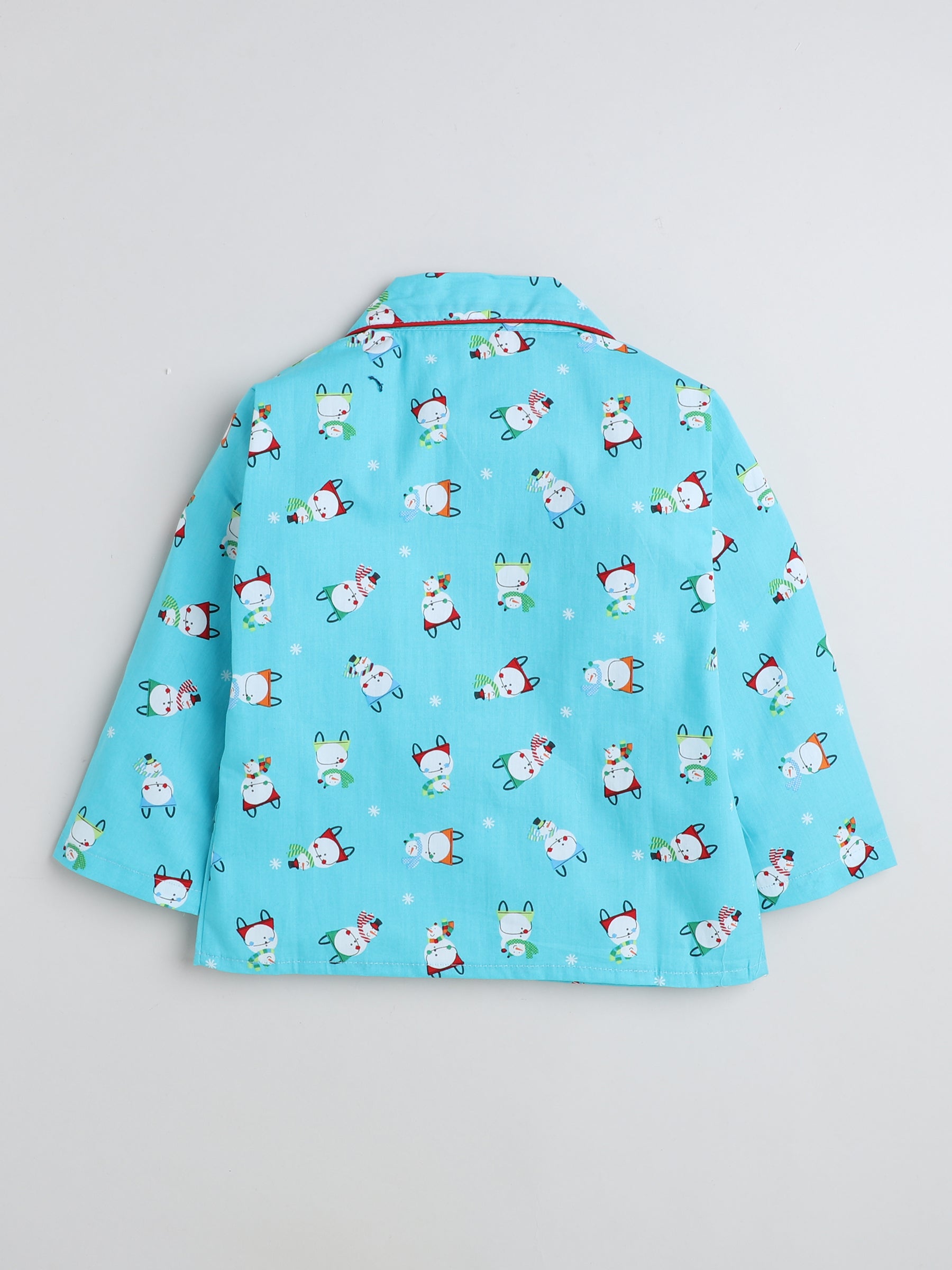 Full Sleeve Cotton Geometric Shapes Printed Night Suit Set Green