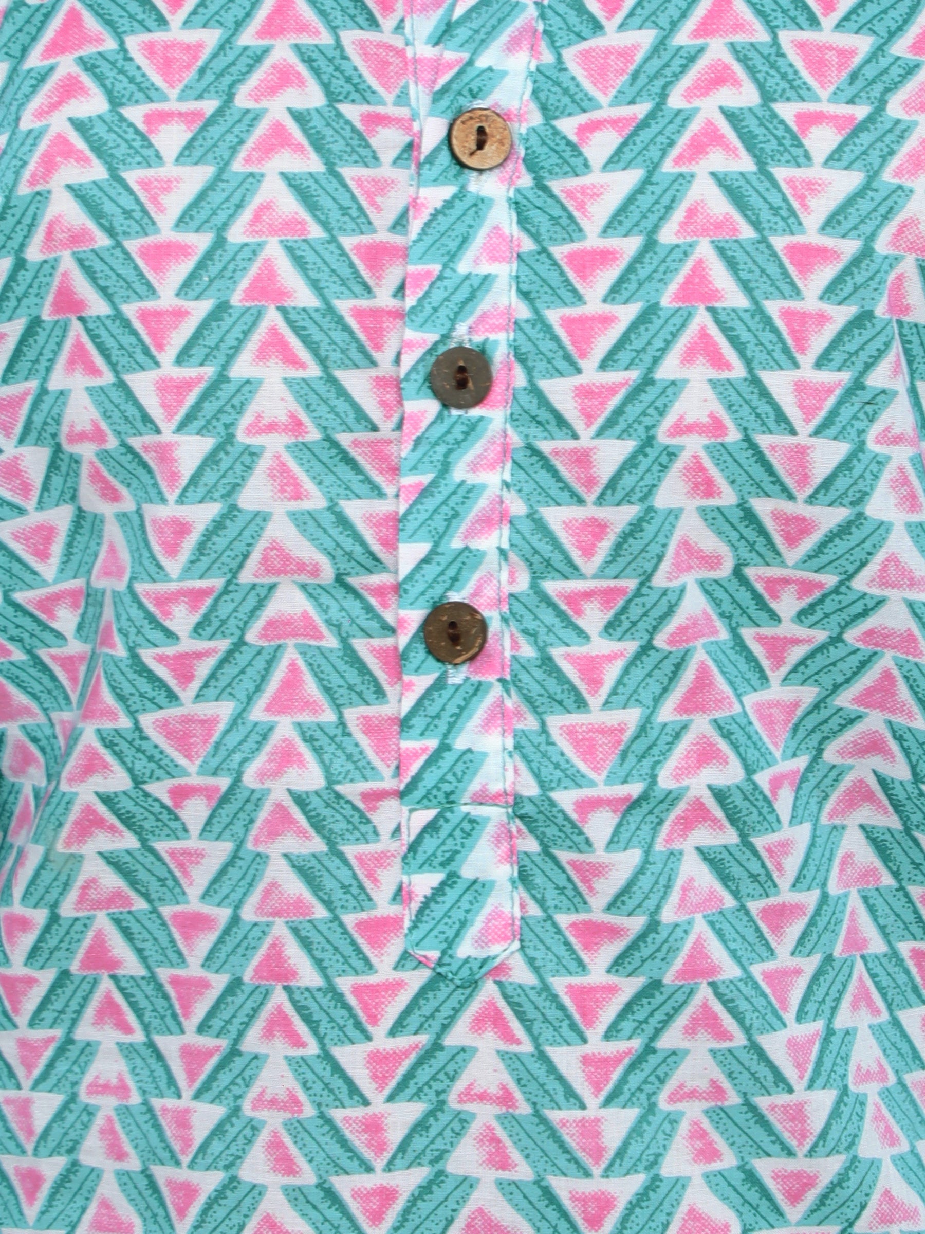 Full Sleeves Abstract Printed Kurta With Pyjama-Teal