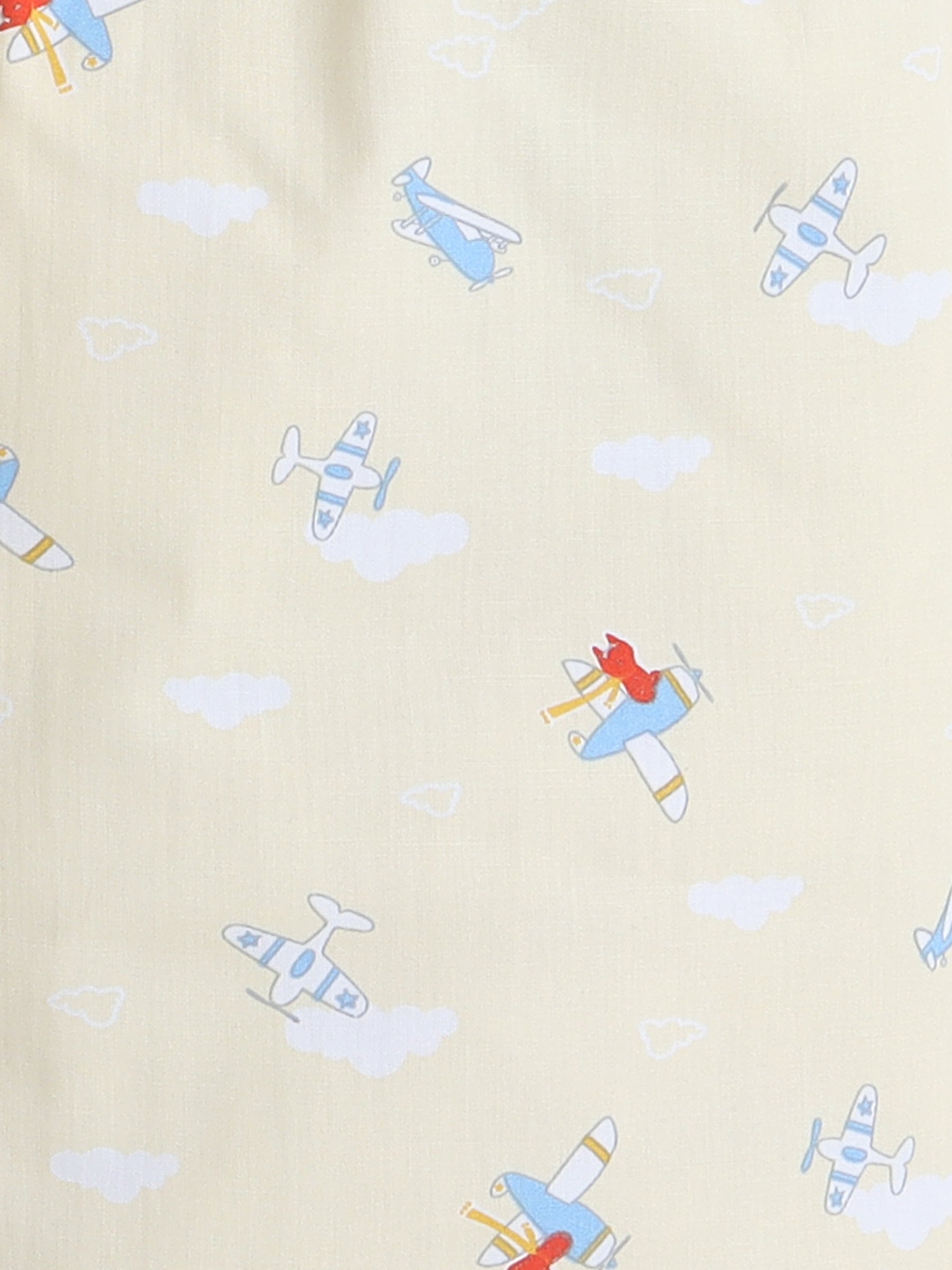 Full Sleeves Cotton Aeroplane Printed Night Suit Set Yellow