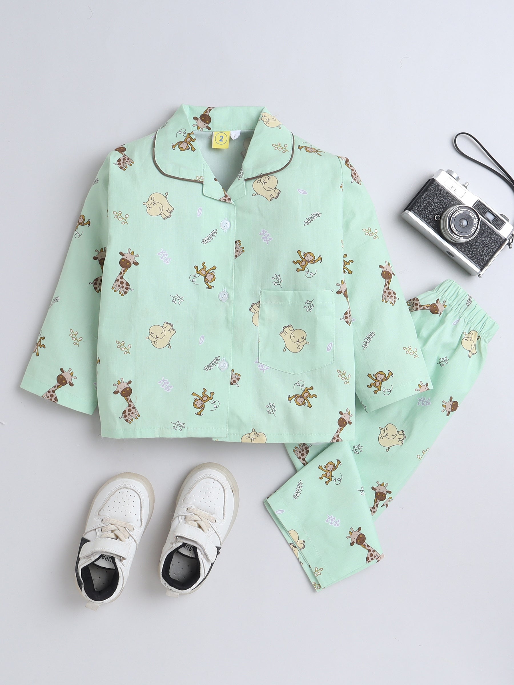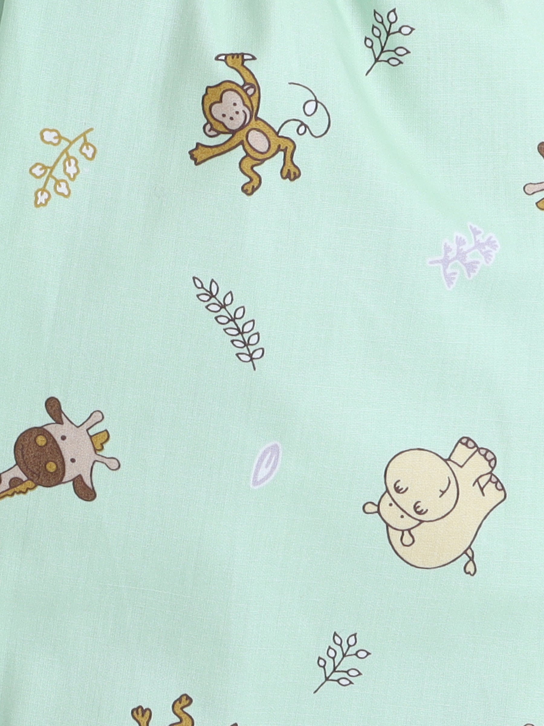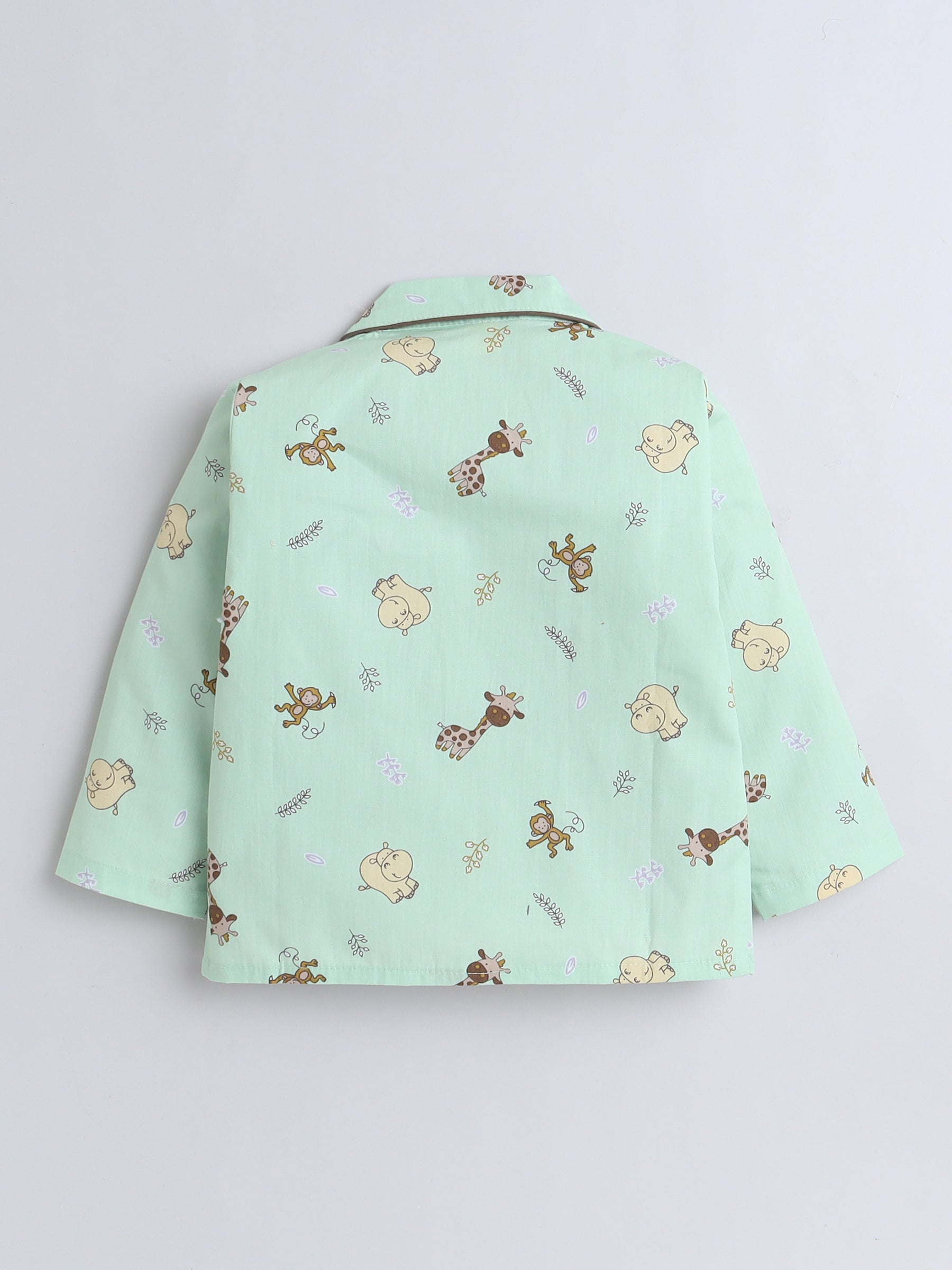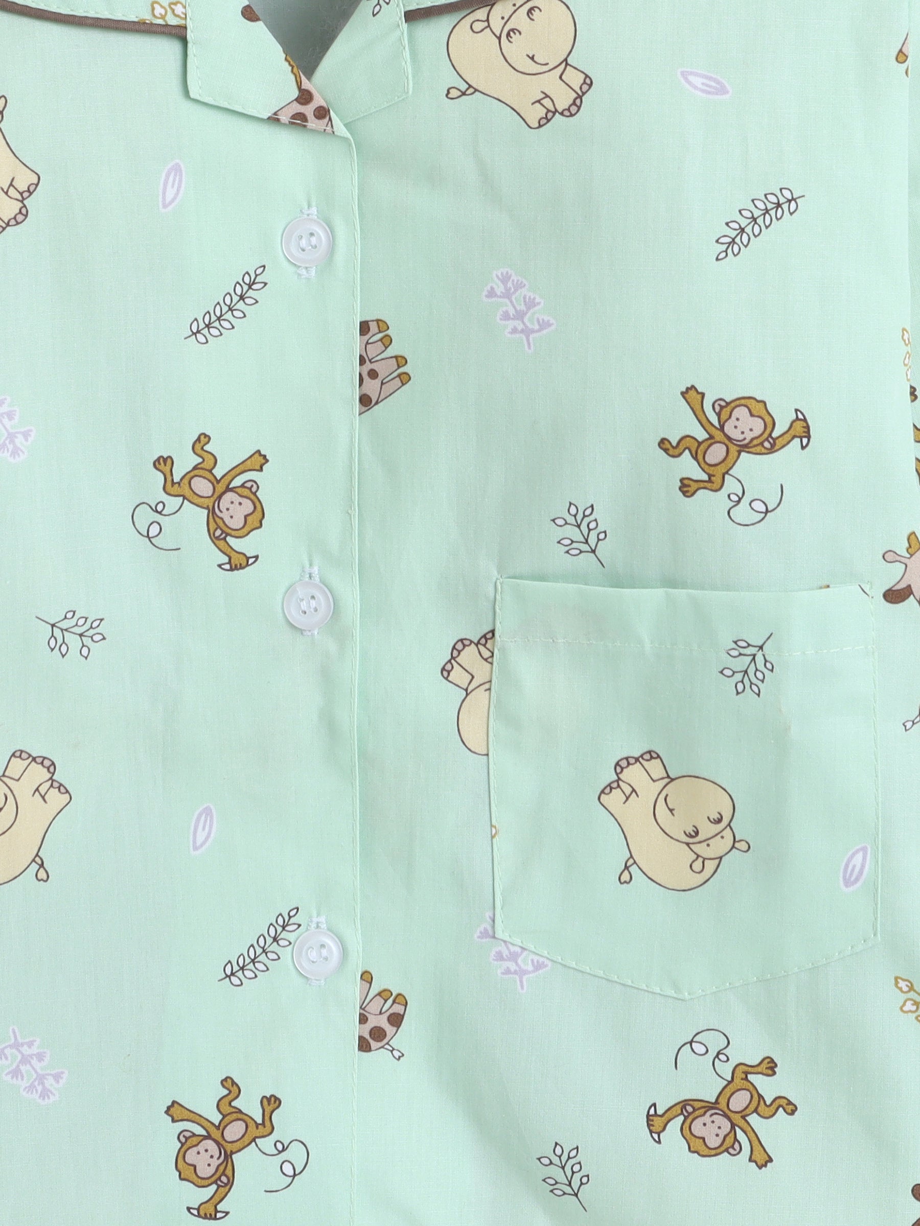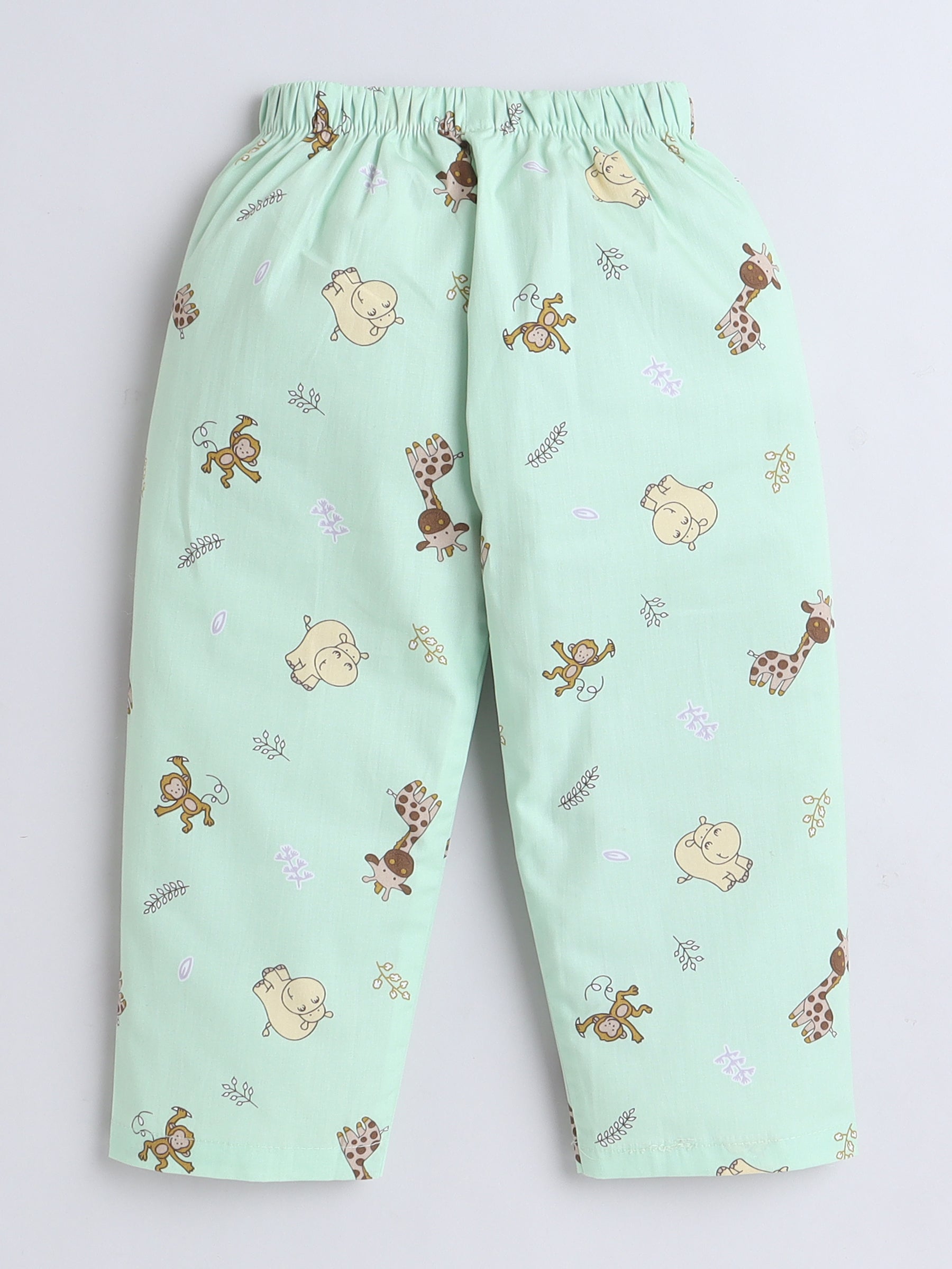 Full Sleeves Cotton Animal Printed Night Suit Set Green