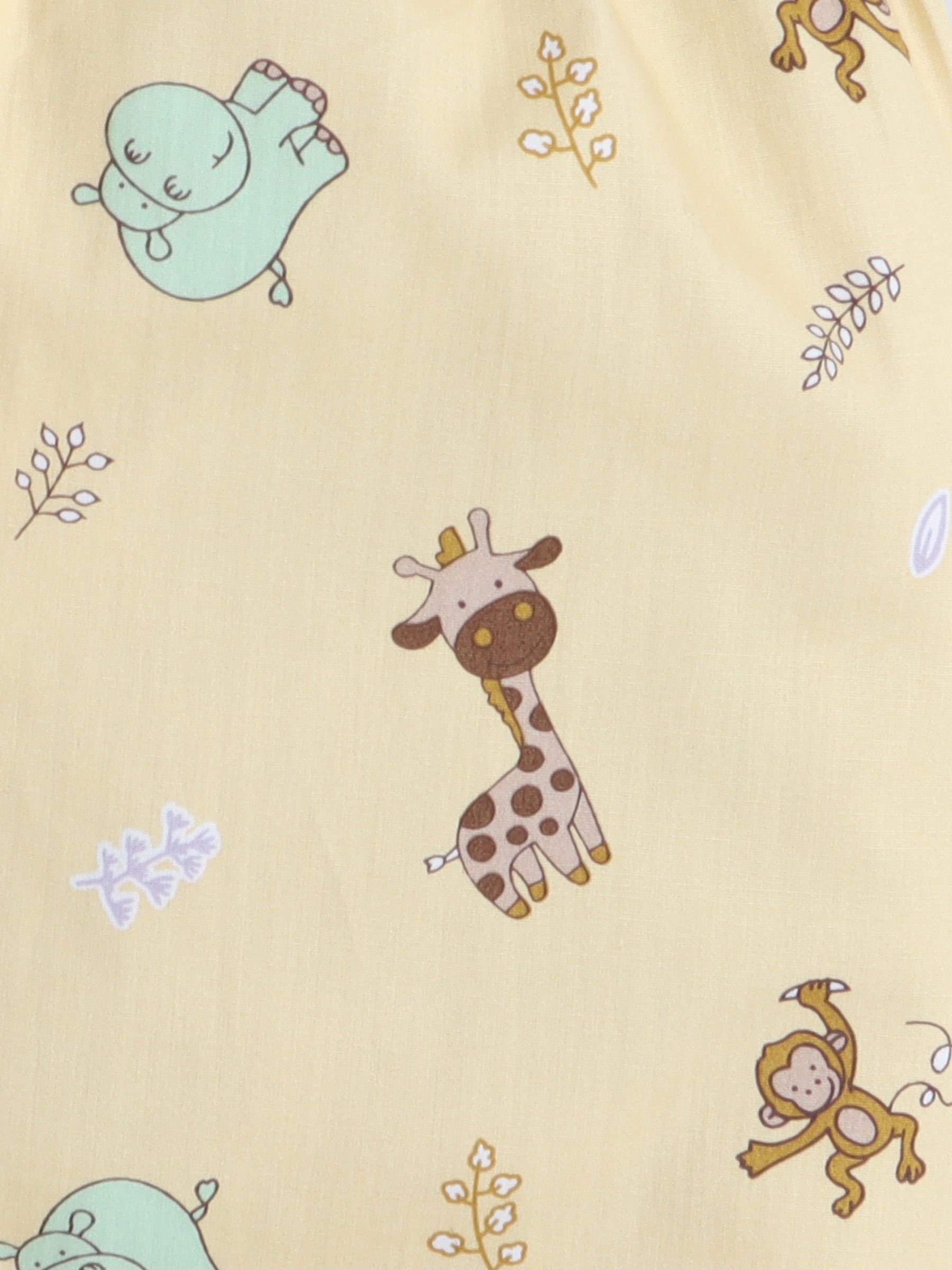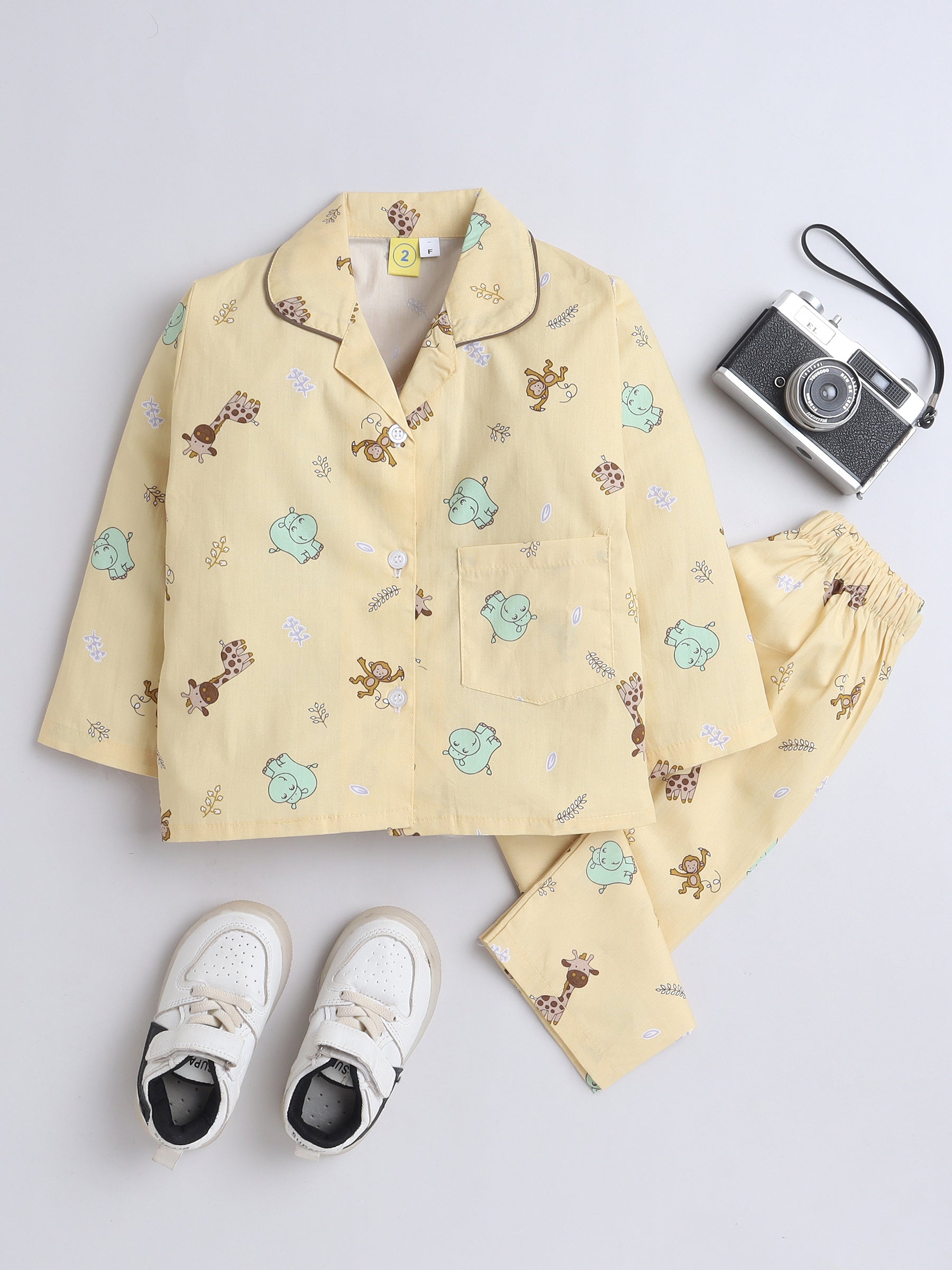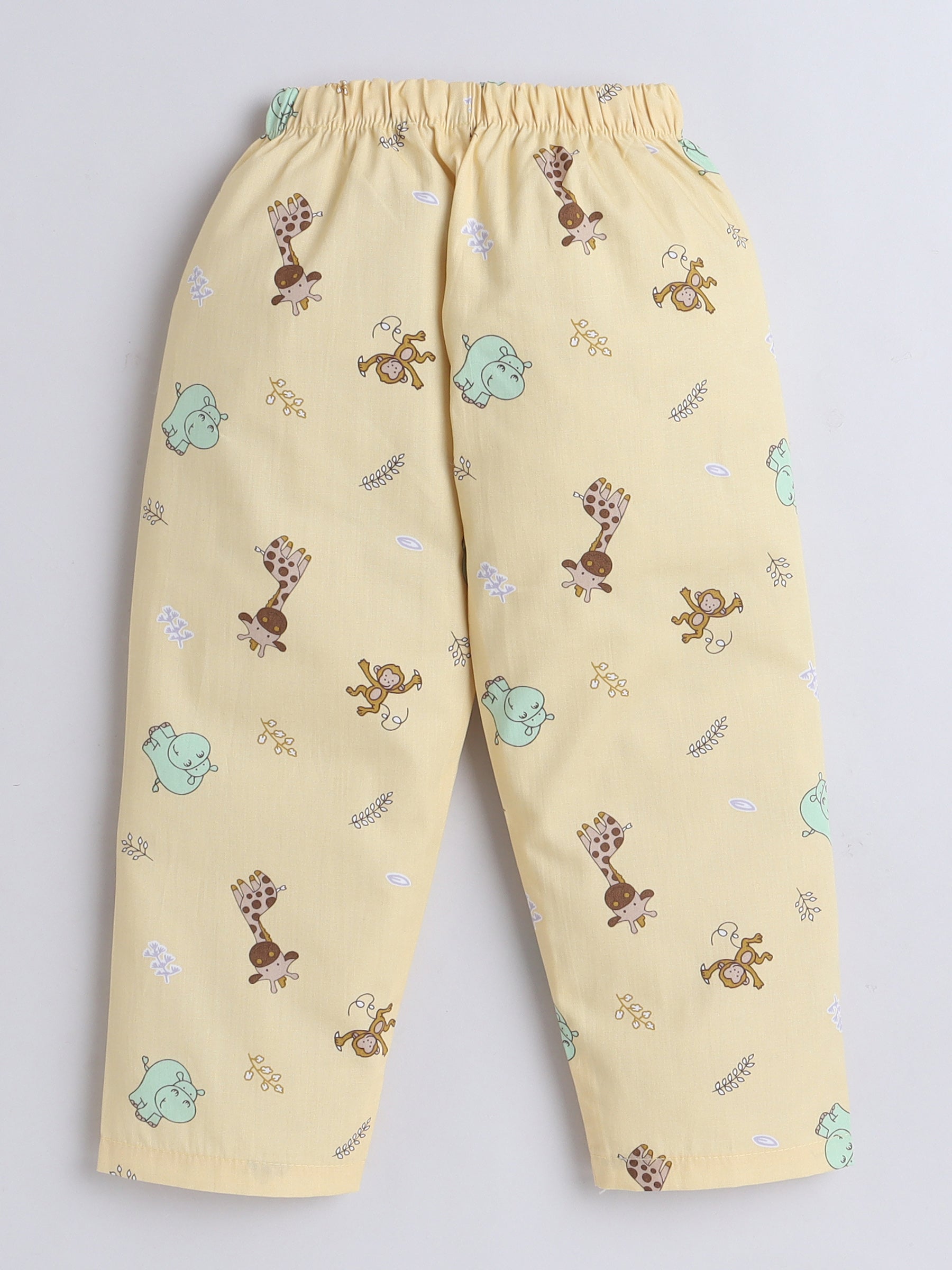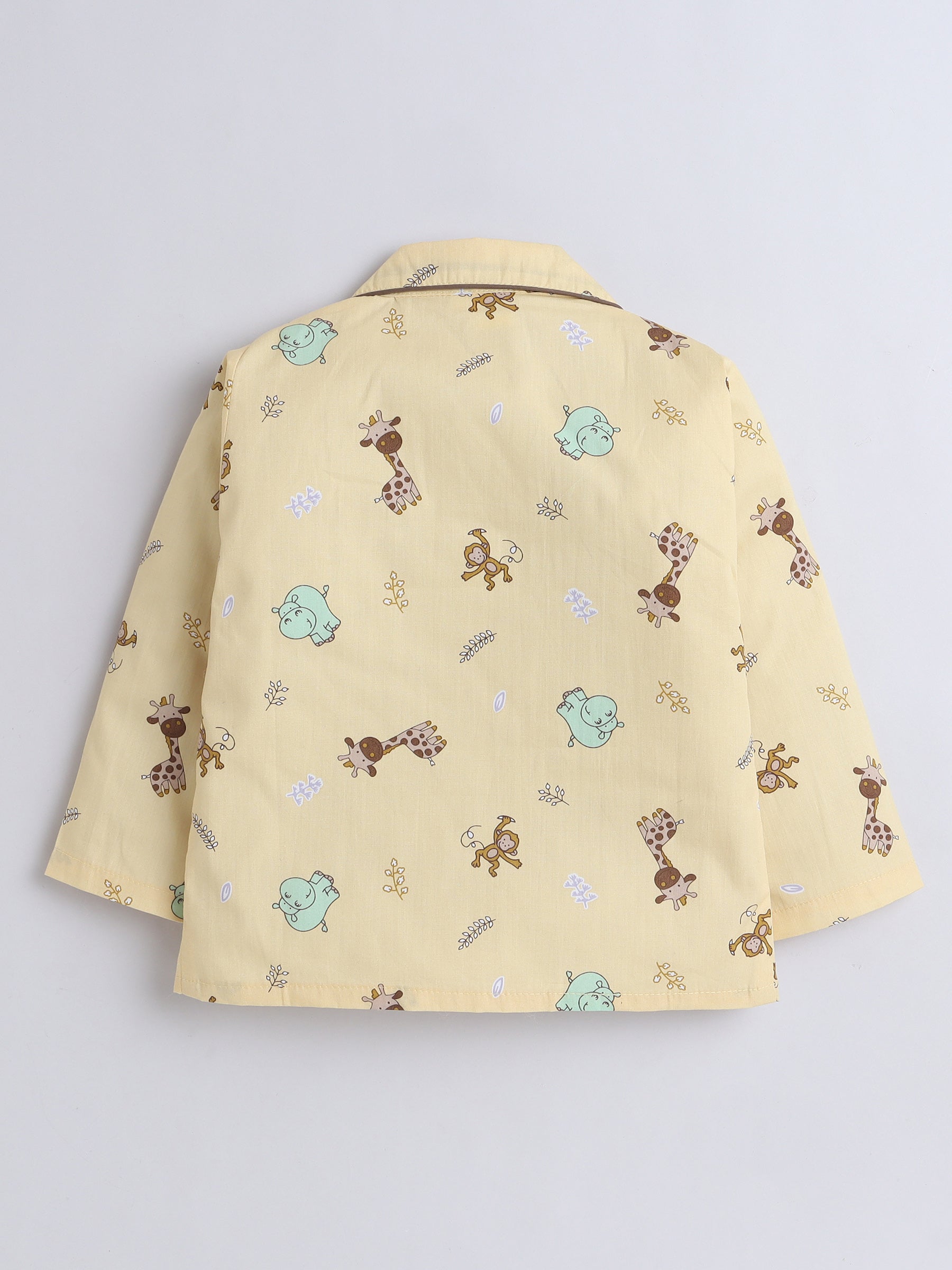 Full Sleeves Cotton Animal Printed Night Suit Set Yellow